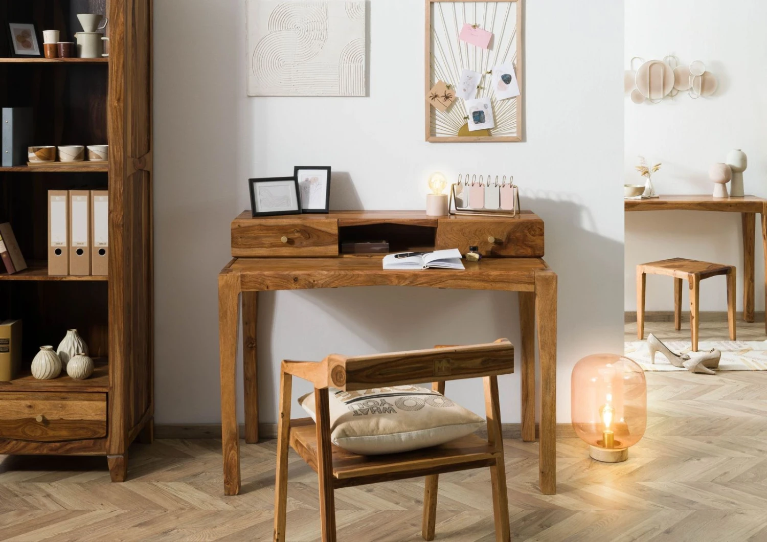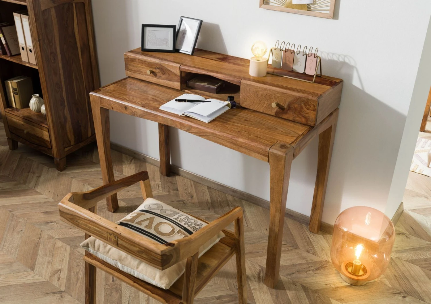 Description du produit ANCONA #150 Bureau en bois de sheesham – laqué / marron 120x60x95