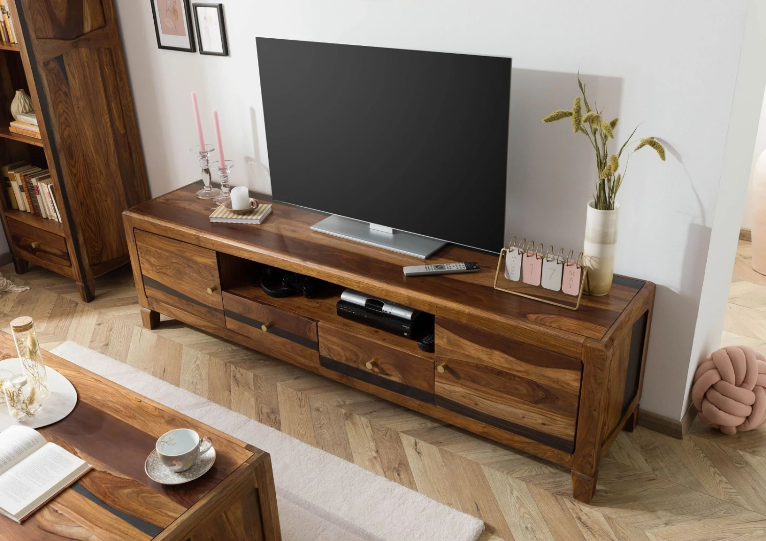 Description du produit ANCONA #211 Meuble TV en bois de Sheesham – laqué / brun foncé 200x45x55