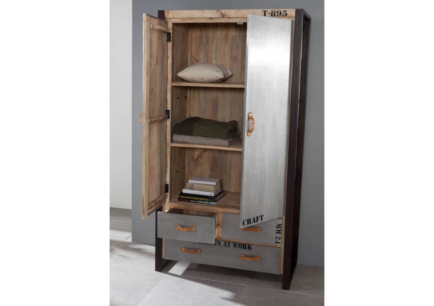 Description du produit Armoire 100×50 Manguier brut imprimé Bois naturel FACTORY #137