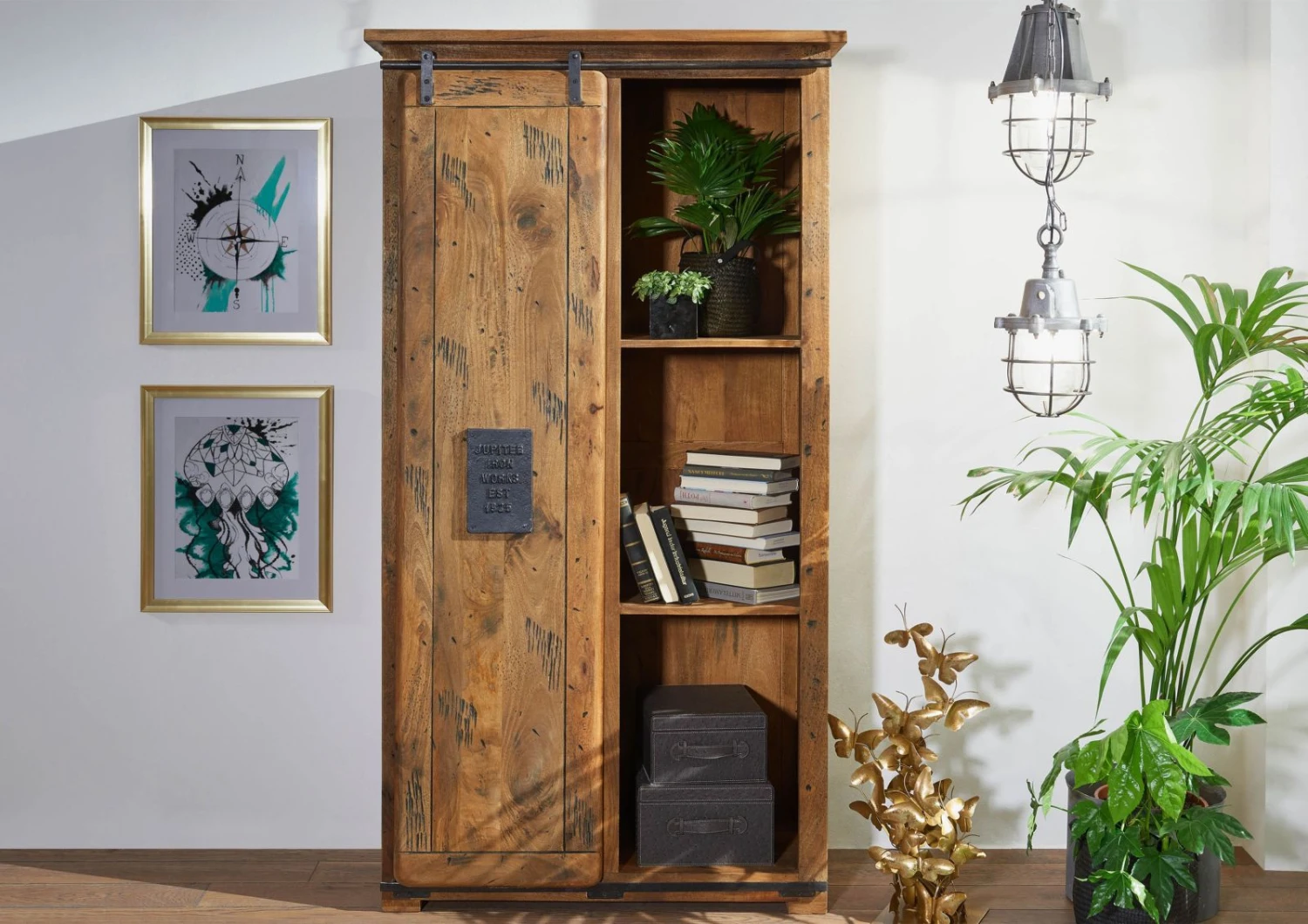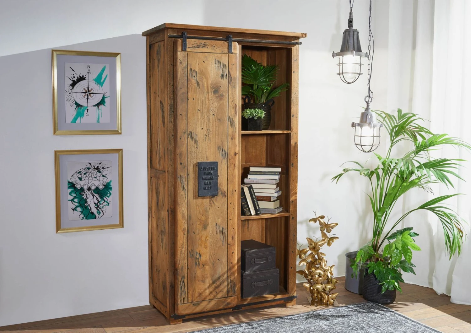 Description du produit Armoire 100×50 Manguier laqué Bois naturel RAILWAY #115