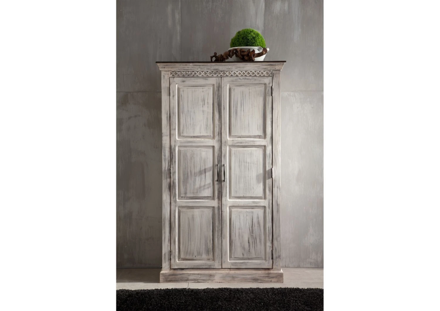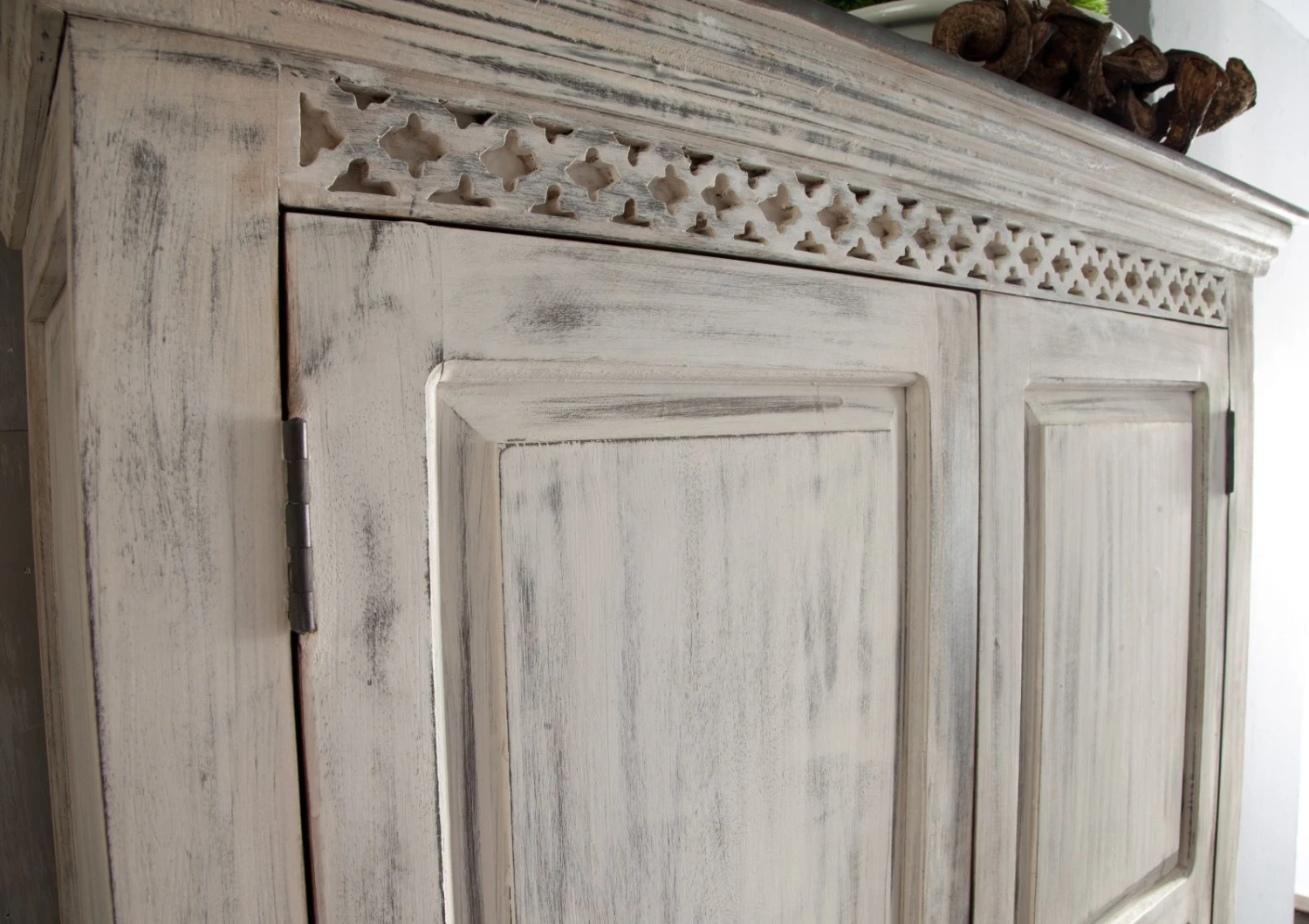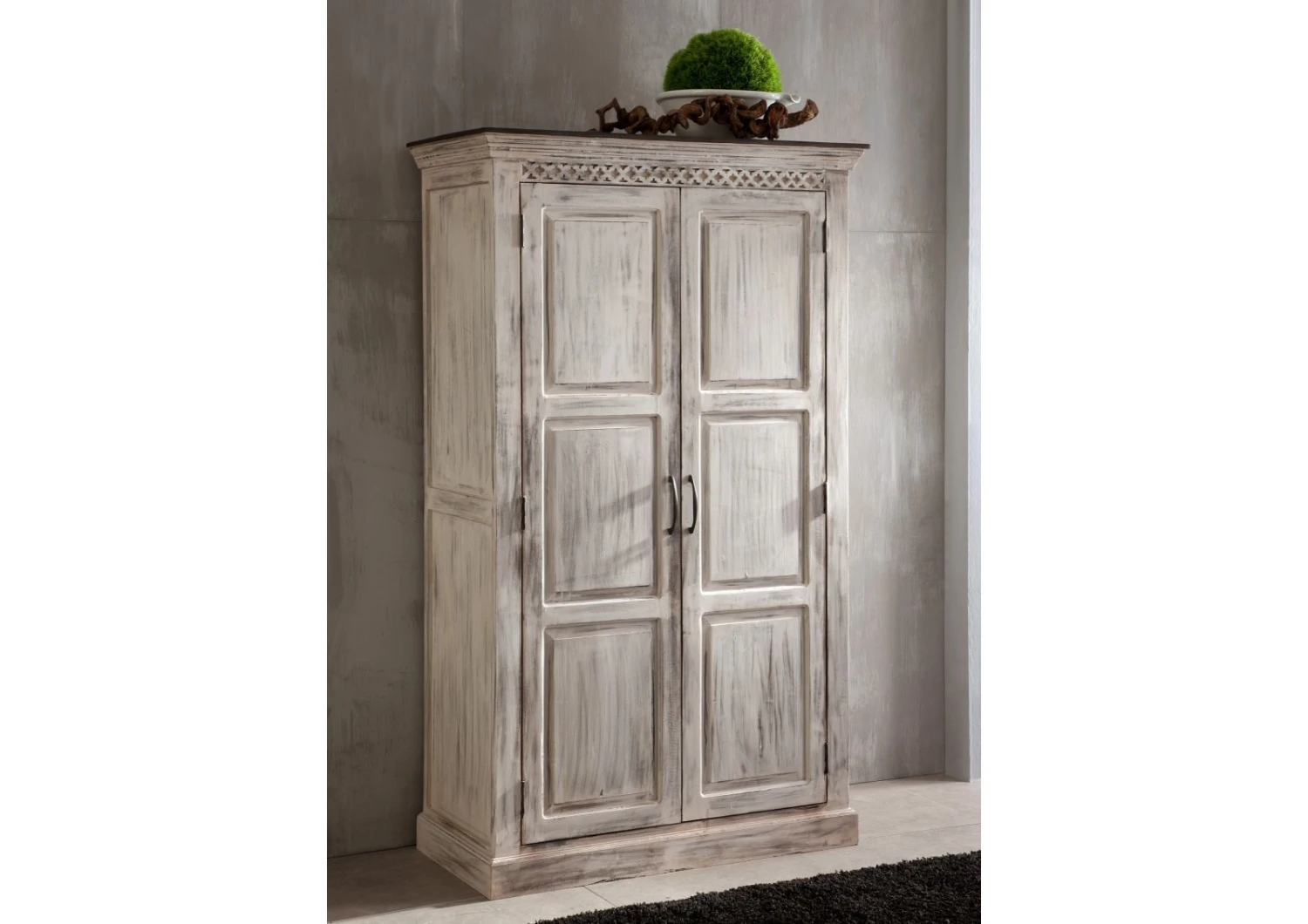 Description du produit Armoire 105×50 Manguier ciré Blanc antique CASTLE-ANTIK #221