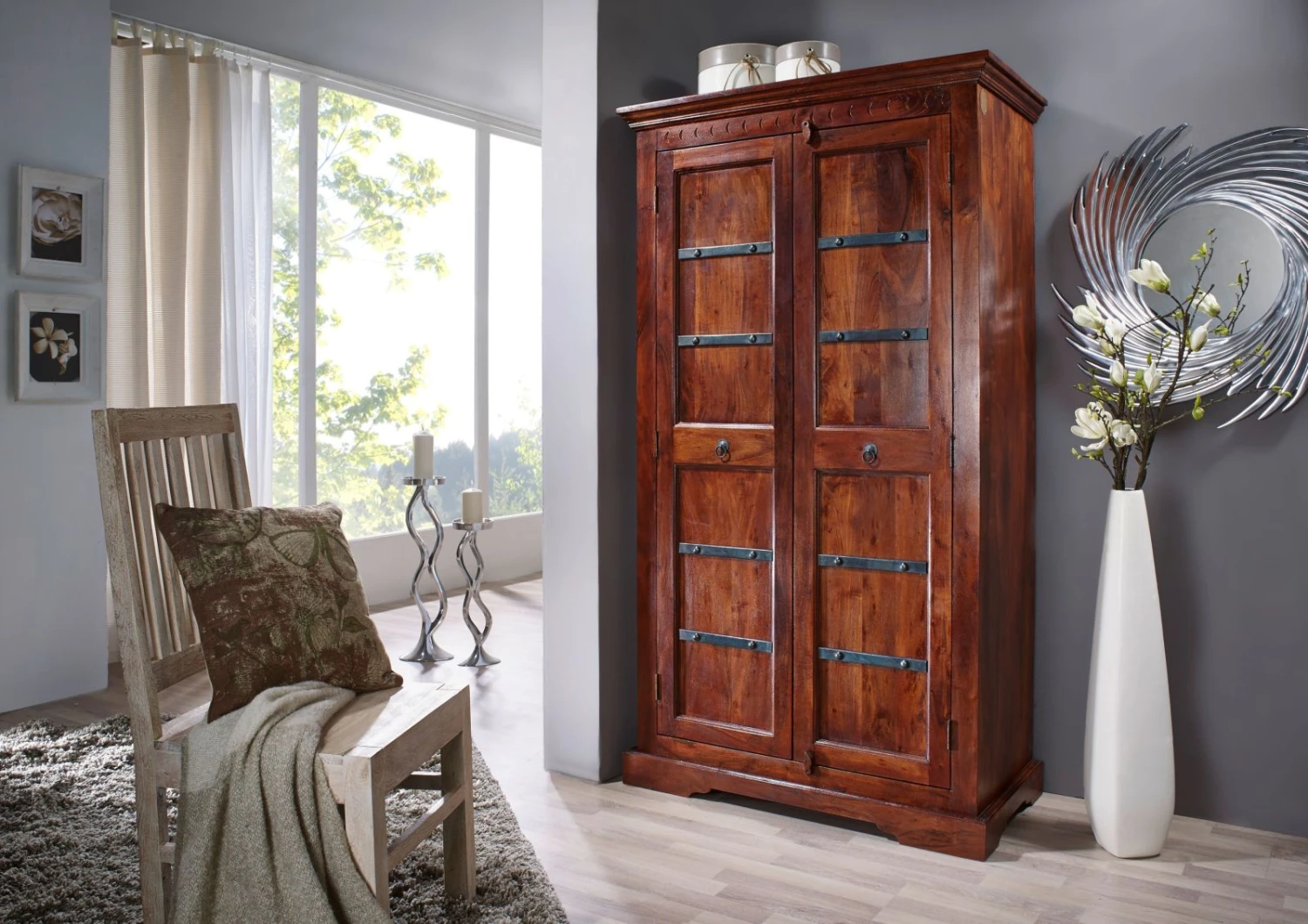 - meuble en bois massif de grande qualité, avec ferrures et poignées en forme d’anneau