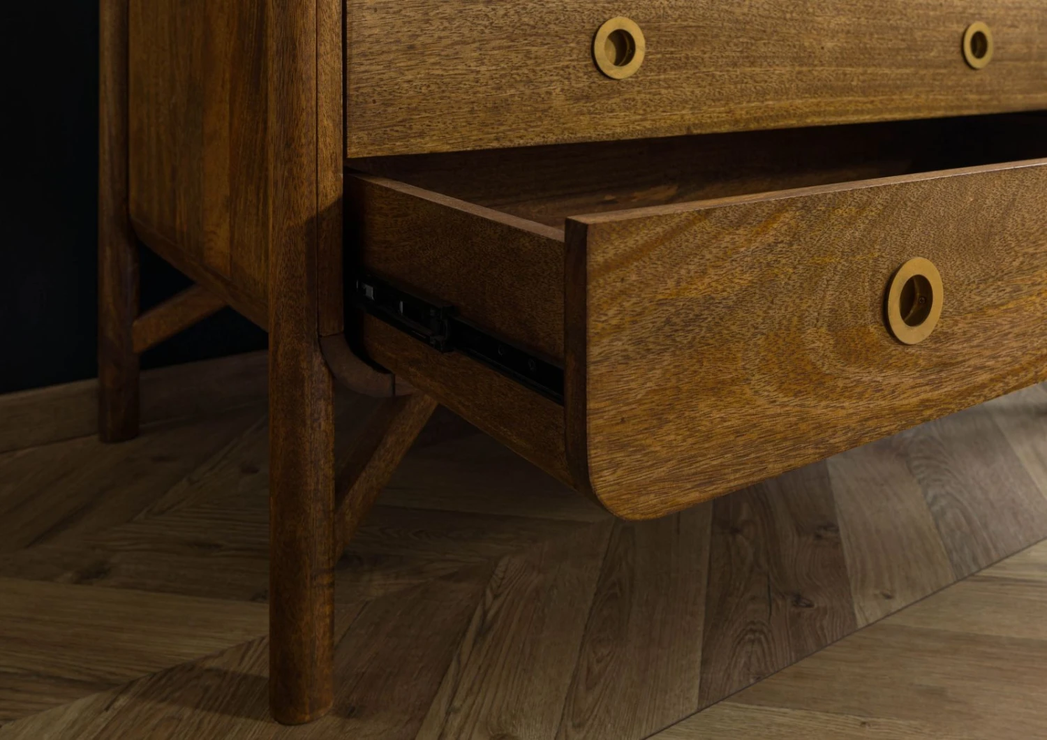 Description du produit Armoire Manguier 100x60x80 huilé marron / poignée dorée LOS ANGELES #111