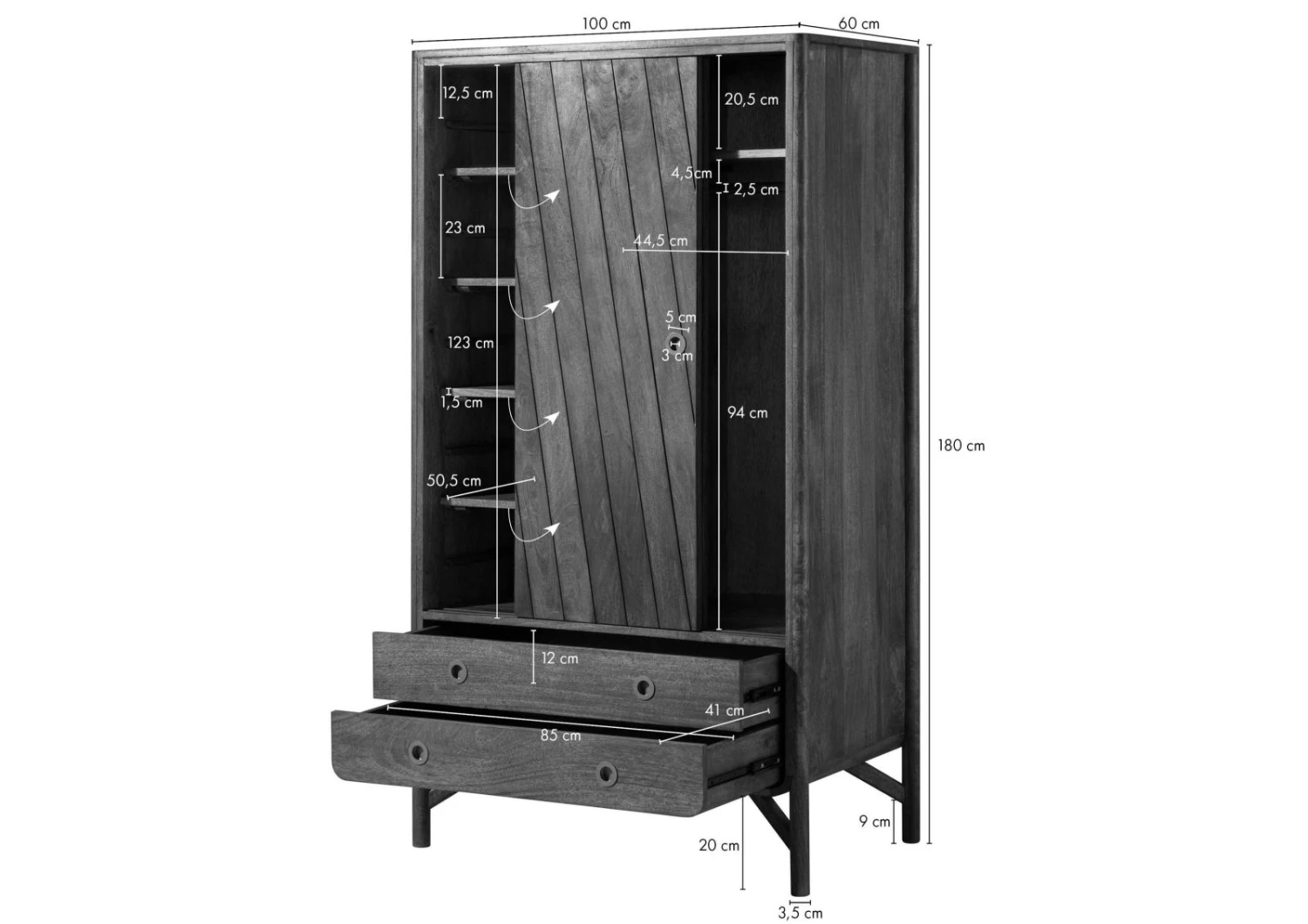 100x60x180 cm (LxPxH)