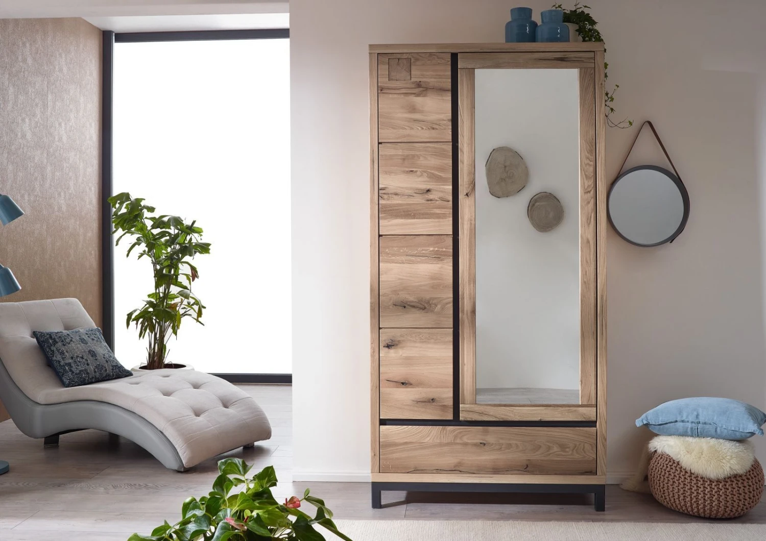 La collection VILLANDERS combine le bois de chêne sauvage, et ses fissures naturelles, avec des éléments métalliques noirs. Cette série de meubles modernes de haute qualité est disponibles en trois teintes élégantes. Qu’il s’agisse de la couleur tabacco brown, bianco ou bois naturel, les trois variations de cette série VILLANDERS apporteront charme individuel à votre intérieur. Le chêne sauvage se distingue non seulement par sa grande stabilité et sa qualité exceptionnelle, mais aussi par son aspect brut et son allure sauvage. En effet, son grain impressionnant, ses nombreux nuds et ses fissures naturelles, caractérisent la surface de chaque meuble rendant exclusif le mobilier de cette série très particulière. Pour un plus grand confort, tous les tiroirs et portes de ces meubles sont équipés de charnières et de glissières à fermeture en douceur.