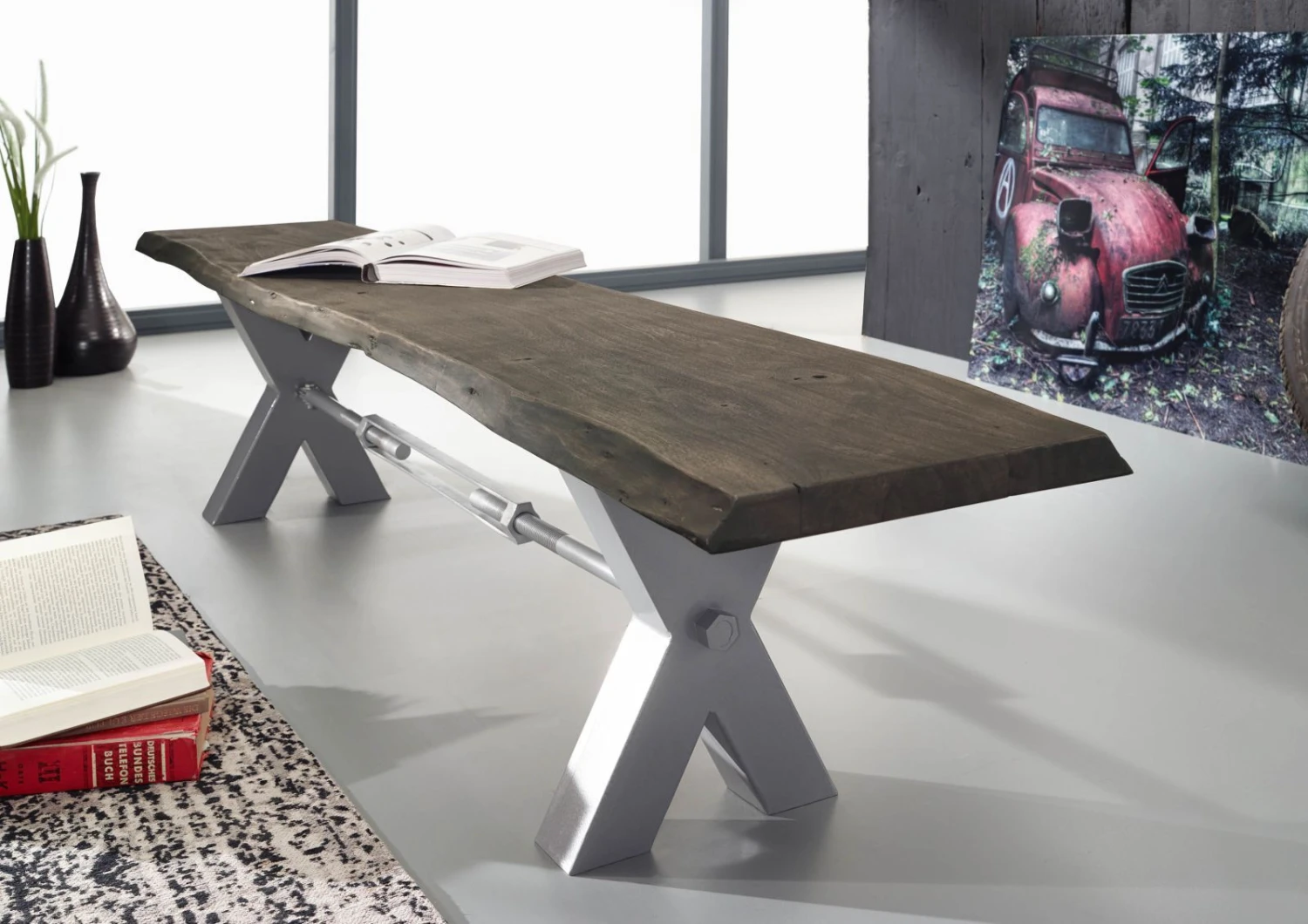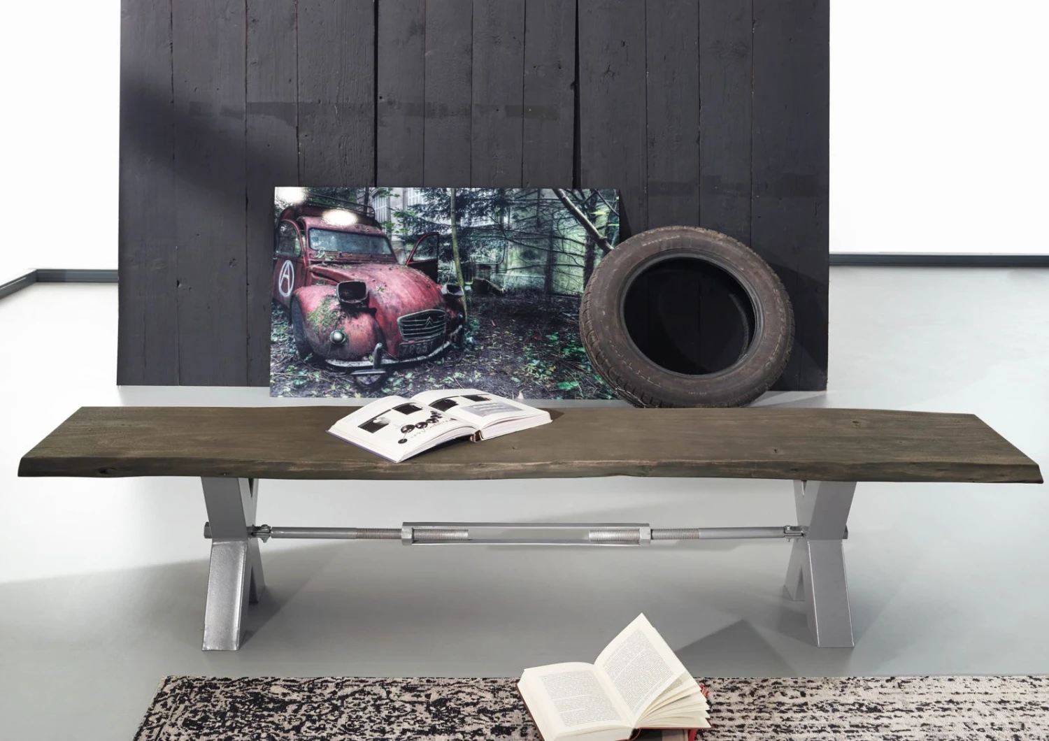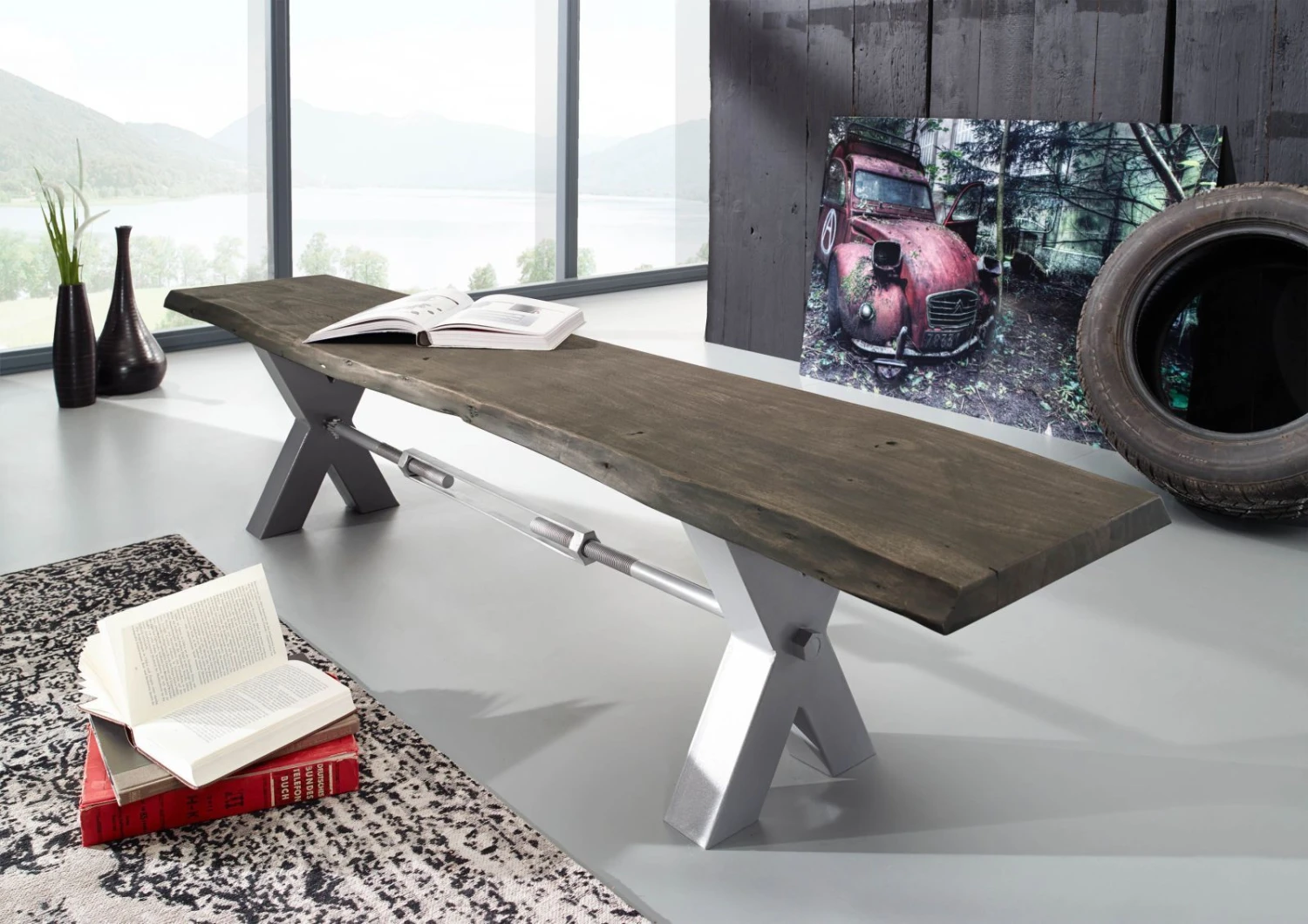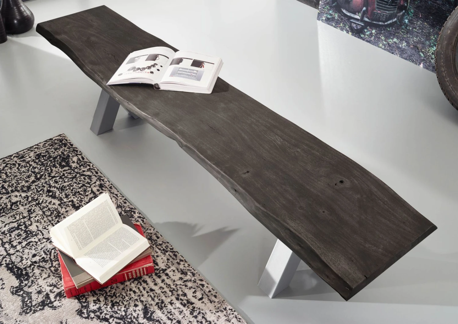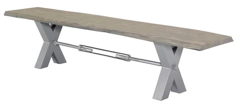 Description du produit Banc 180×38 Acacia laqué Gris taupe IRON LABEL #141