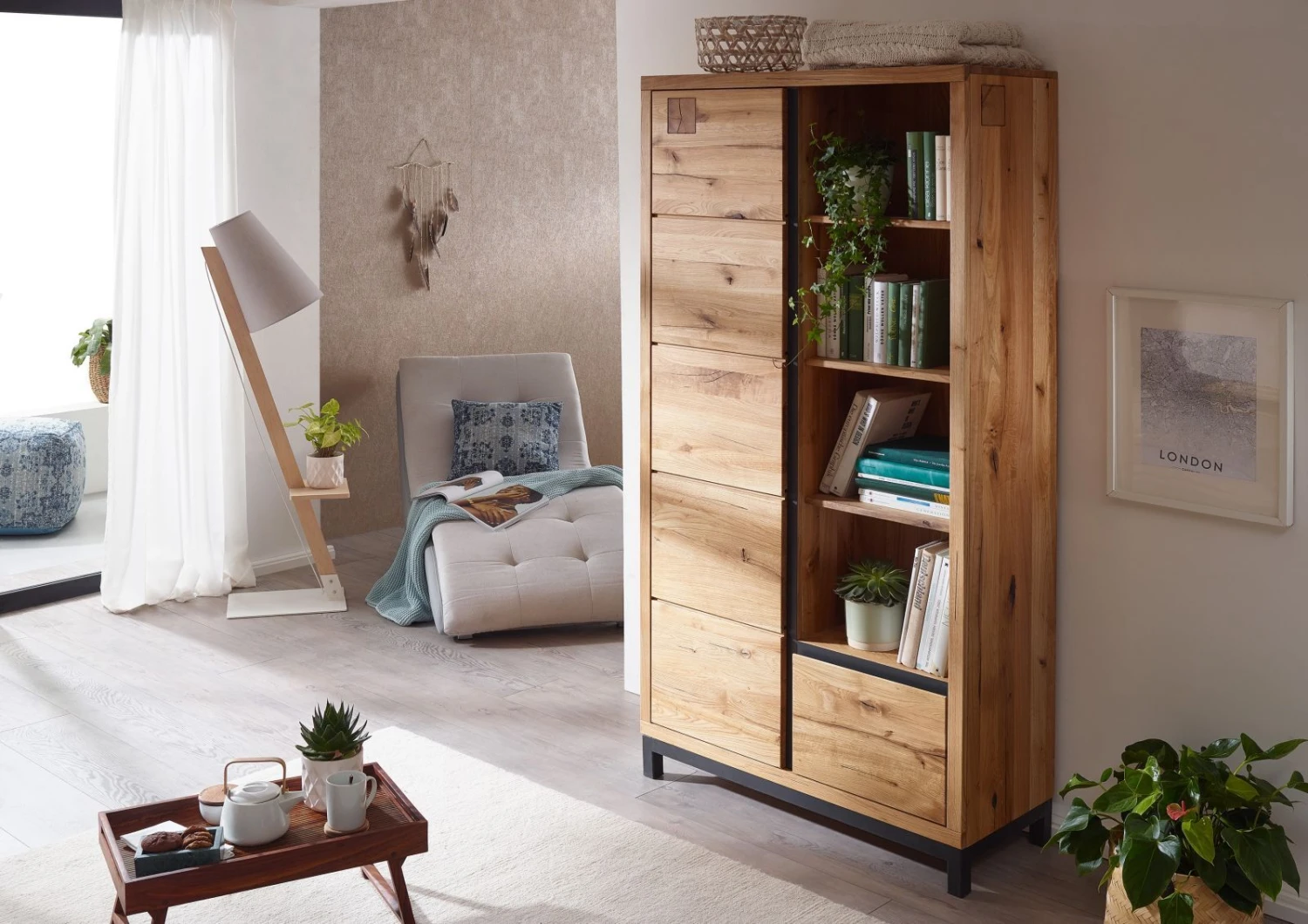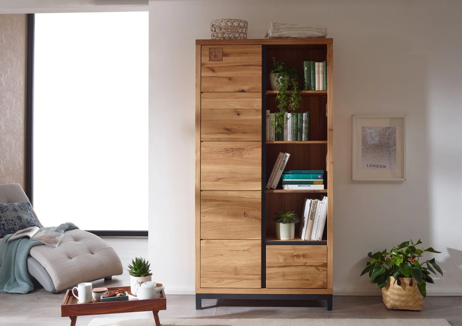 La collection VILLANDERS combine le bois de chêne sauvage, et ses fissures naturelles, avec des éléments métalliques noirs. Cette série de meubles modernes de haute qualité est disponibles en trois teintes élégantes. Qu’il s’agisse de la couleur tabacco brown, bianco ou bois naturel, les trois variations de cette série VILLANDERS apporteront charme individuel à votre intérieur. Le chêne sauvage se distingue non seulement par sa grande stabilité et sa qualité exceptionnelle, mais aussi par son aspect brut et son allure sauvage. En effet, son grain impressionnant, ses nombreux nuds et ses fissures naturelles, caractérisent la surface de chaque meuble rendant exclusif le mobilier de cette série très particulière. Pour un plus grand confort, tous les tiroirs et portes de ces meubles sont équipés de charnières et de glissières à fermeture en douceur.