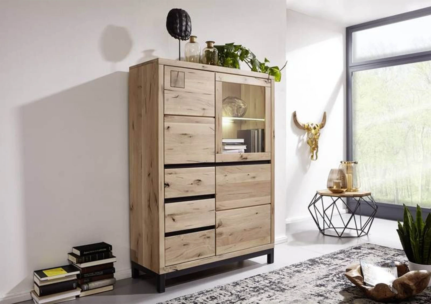 La collection VILLANDERS combine le bois de chêne sauvage, et ses fissures naturelles, avec des éléments métalliques noirs. Cette série de meubles modernes de haute qualité est disponibles en trois teintes élégantes. Qu’il s’agisse de la couleur tabacco brown, bianco ou bois naturel, les trois variations de cette série VILLANDERS apporteront charme individuel à votre intérieur. Le chêne sauvage se distingue non seulement par sa grande stabilité et sa qualité exceptionnelle, mais aussi par son aspect brut et son allure sauvage. En effet, son grain impressionnant, ses nombreux nuds et ses fissures naturelles, caractérisent la surface de chaque meuble rendant exclusif le mobilier de cette série très particulière. Pour un plus grand confort, tous les tiroirs et portes de ces meubles sont équipés de charnières et de glissières à fermeture en douceur.