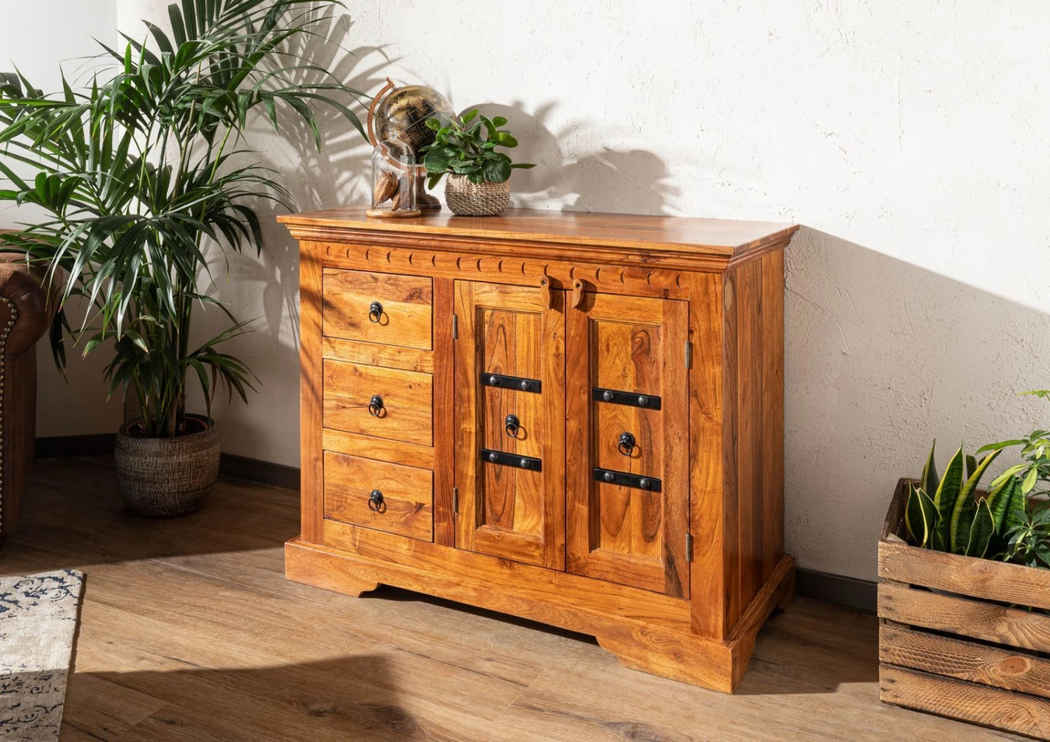 Nos produits sont fabriqués artisanalement à partir de matières premières naturelles. Les couleurs et les structures des bois utilisés peuvent donc varier d′un meuble à un autre. Les imprimés, peintures et dessins sont aussi fait à la main et peuvent, de ce fait, présenter des variations par rapport aux visuels de notre site.