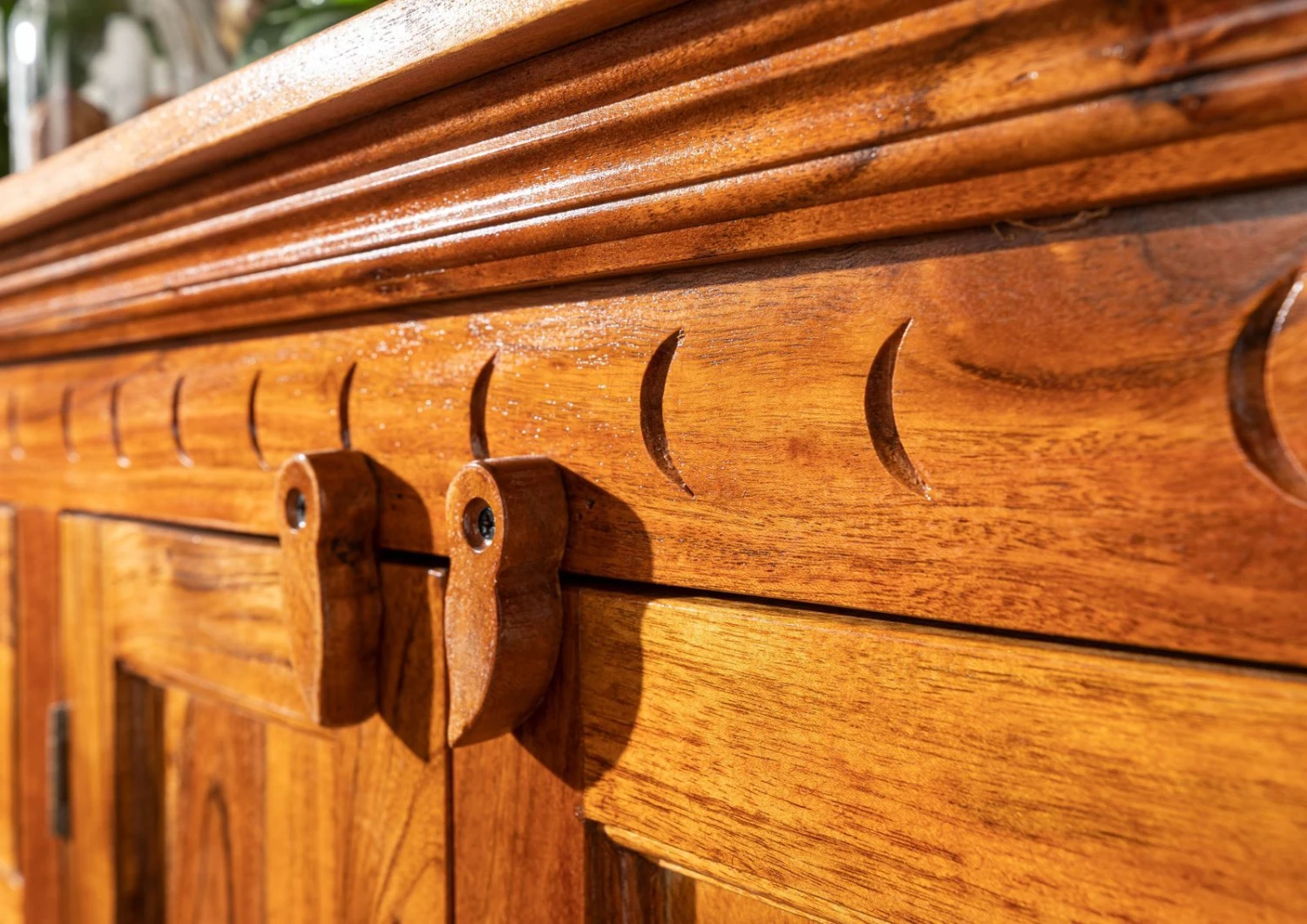 Nos meubles ne sont pas vernis, le bois est une matière vivante dont nous respectons la nature. Pour en assurer la longévité, nous vous invitons à l´entretenir et à le protéger contre les taches.