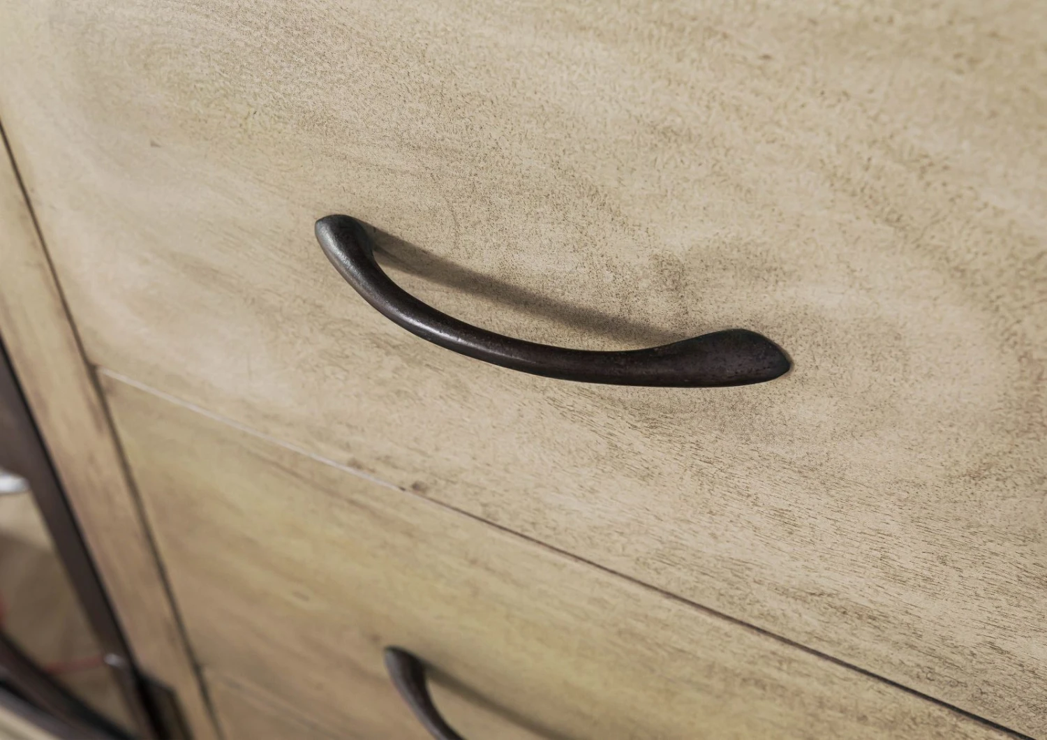 Élégance et détente sont de rigueur avec ce vaisselier bar à vin en bois de manguier massif, ferronnerie et décors en vitrage dans un style vintage.