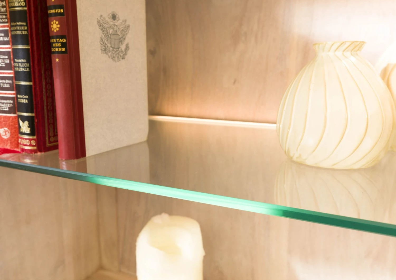 - Accroche-regards : structure en nid d’abeilles sur les tiroirs ainsi que sur le bord supérieur et inférieur des portes en verre