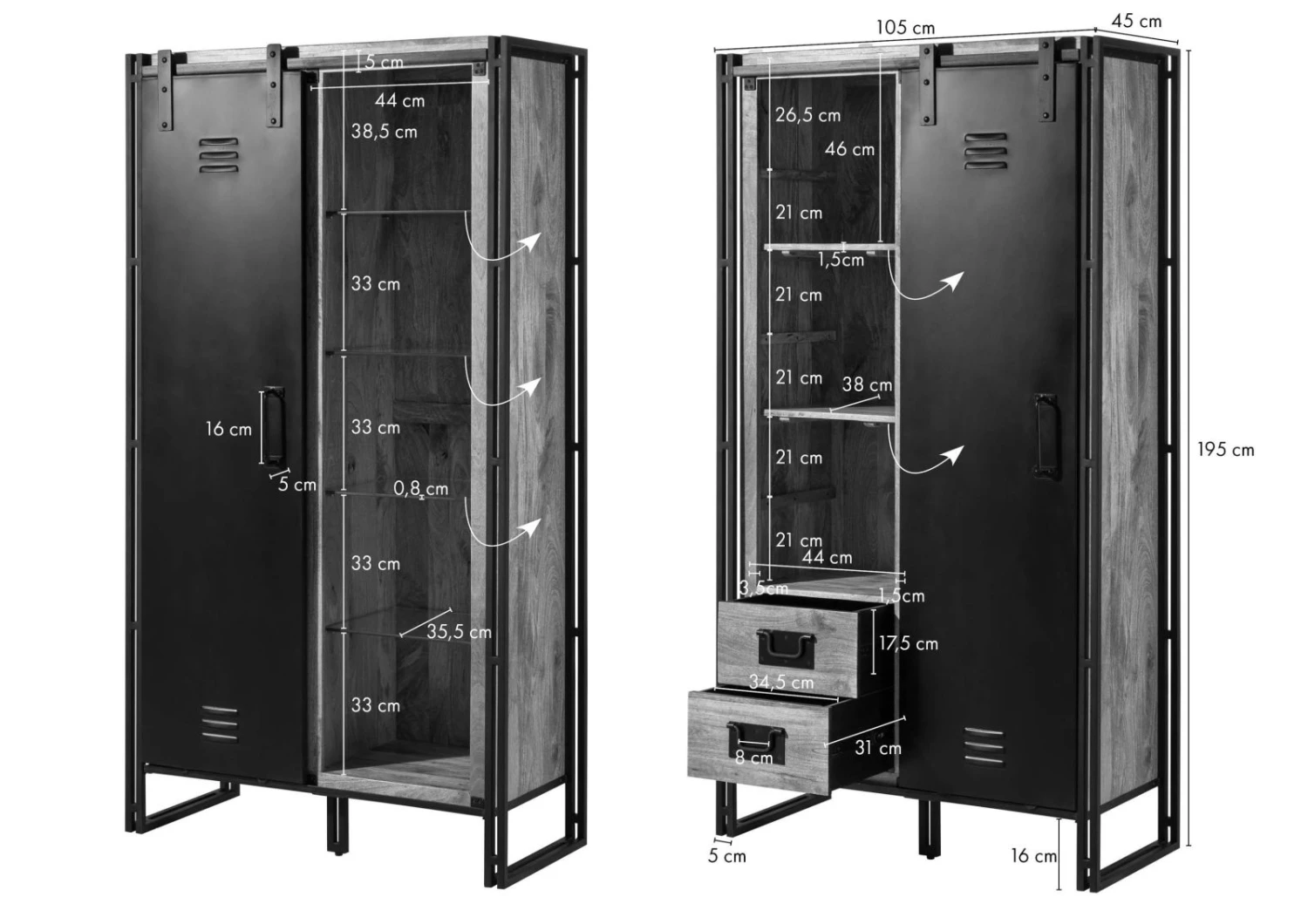 105x45x195 cm (LxPxH)
