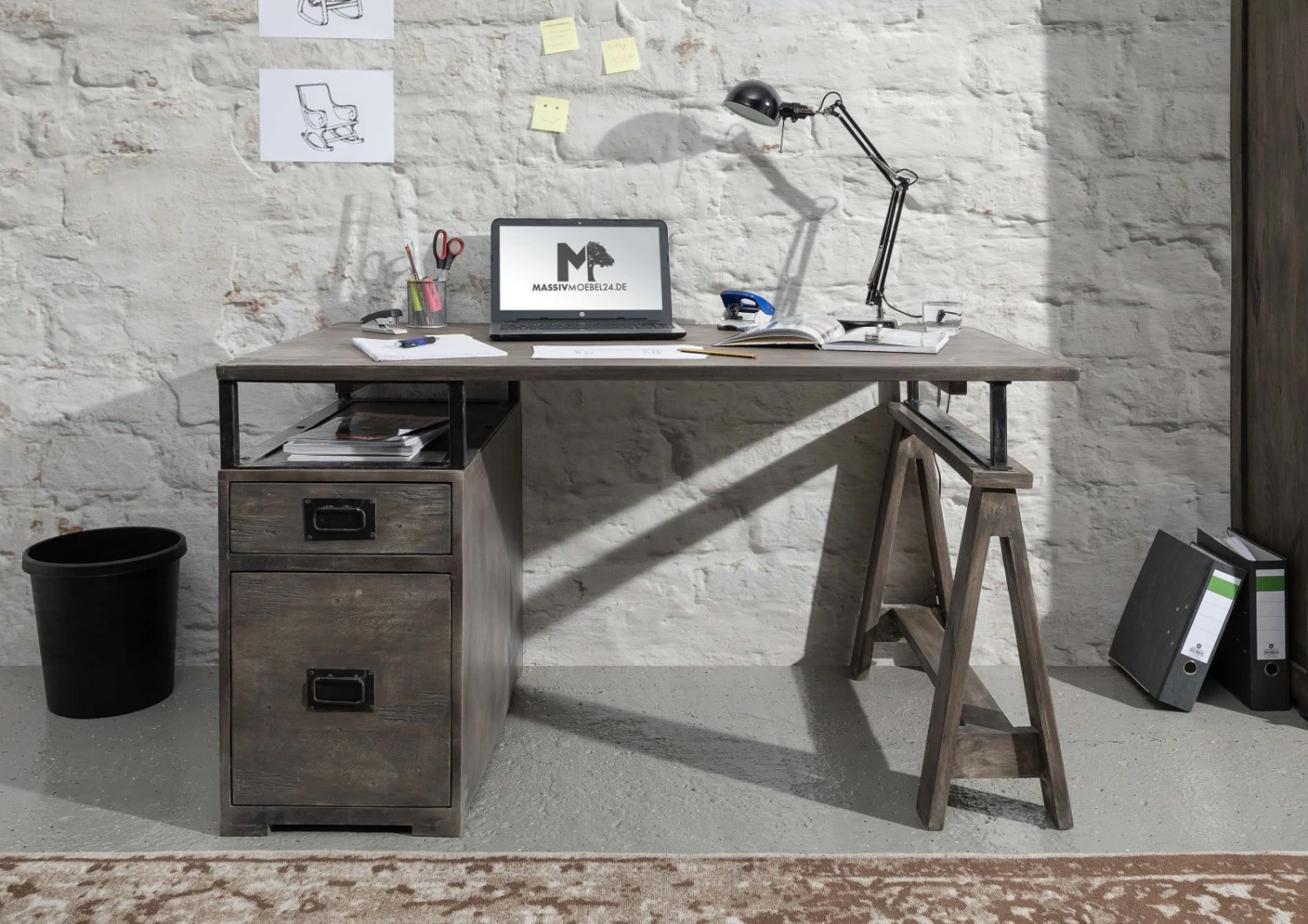 Description du produit Bureau 140×78 Manguier laqué Gris RAILWAY #229