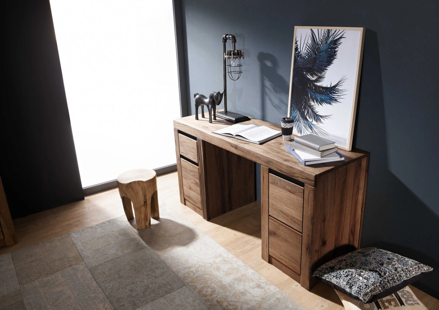 Description du produit Bureau 150×50 Chênes sauvage et lombard huilé Tabacco brown MONTREUX #319