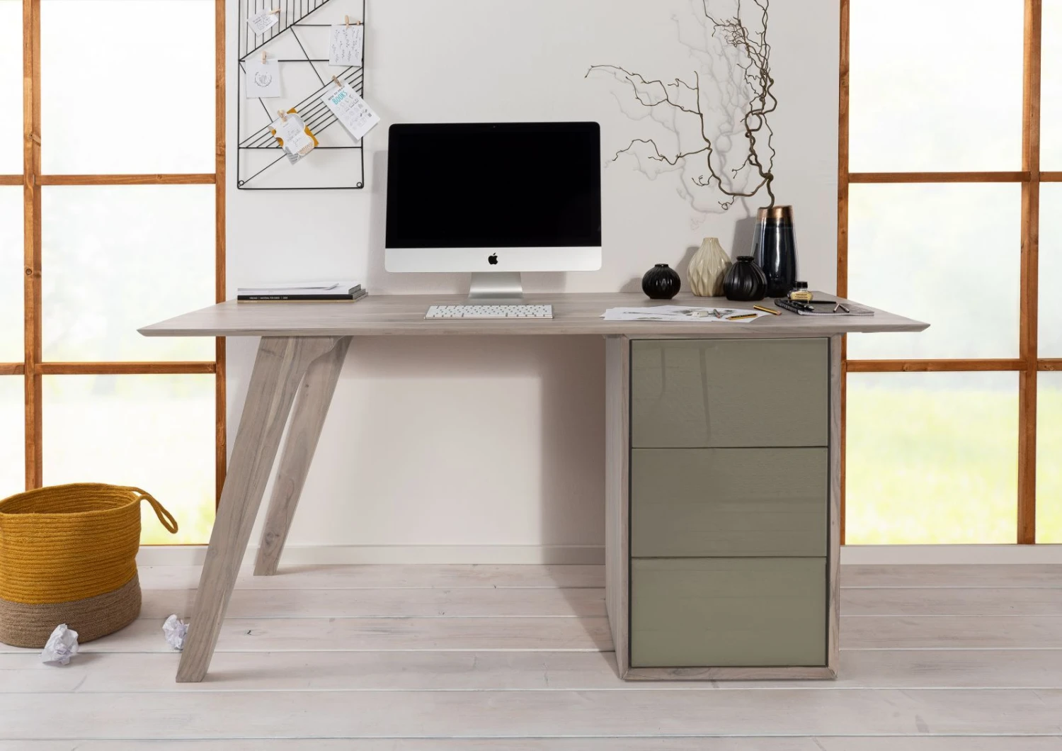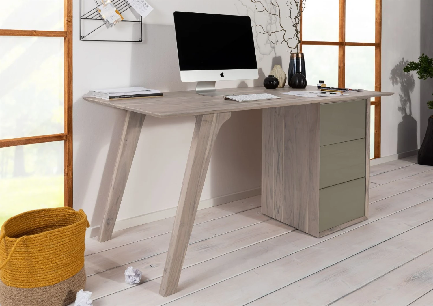 Description du produit Bureau 160×80 Acacia laqué Brun crême TROMSO #003