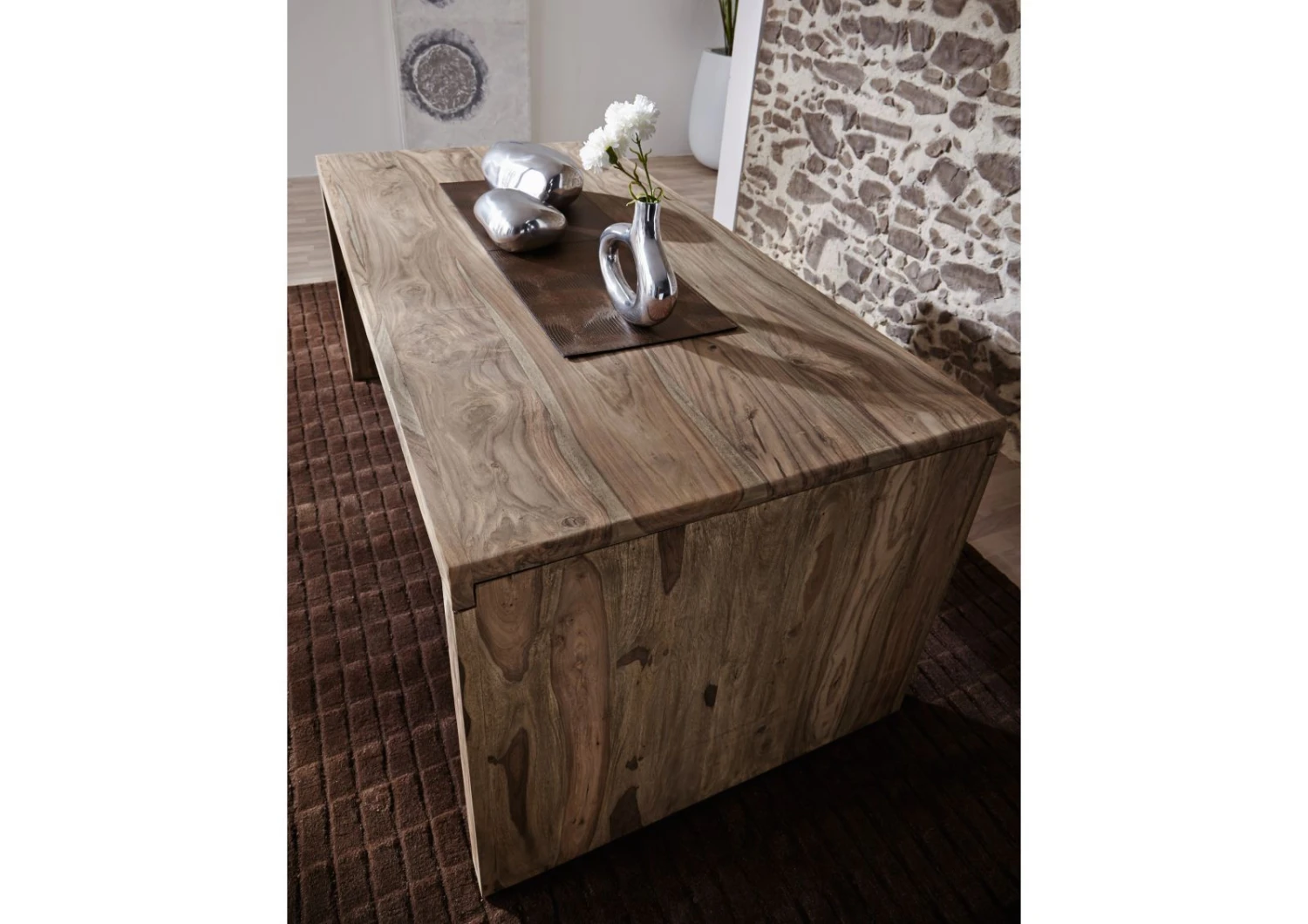 Laissez entrer la nature au sein de votre foyer ! La série NATURE GREY est produite à partir de bois massif de palissandre indien. Le veinage marqué et le grain incomparable de cette essence de bois exotique permet de le reconnaitre facilement parmi dautres. Idéal dans un intérieur sobre, afin dajouter une touche doriginalité, les meubles de cette série plairont à tous ceux qui rêvent de créer un espace de vie calme, apaisant et ayant du caractère.