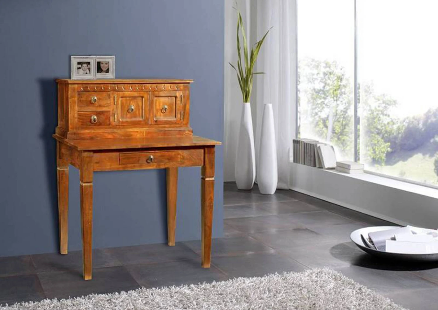 Description du produit Bureau 85×68 Acacia laqué Miel OXFORD #0507