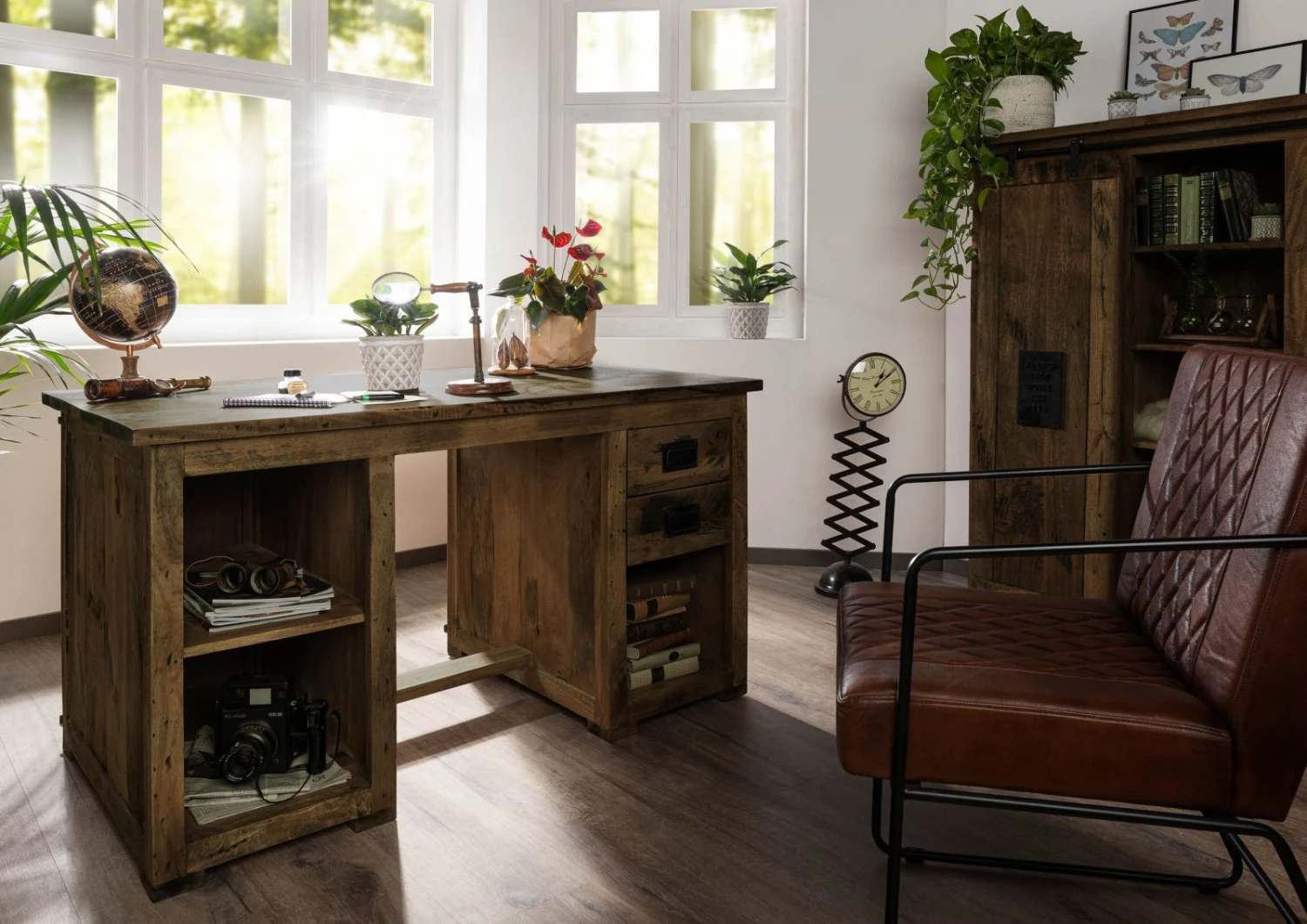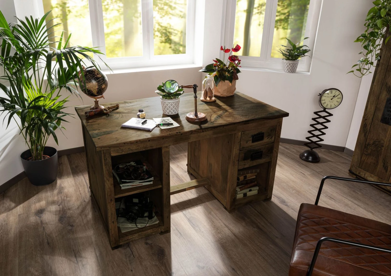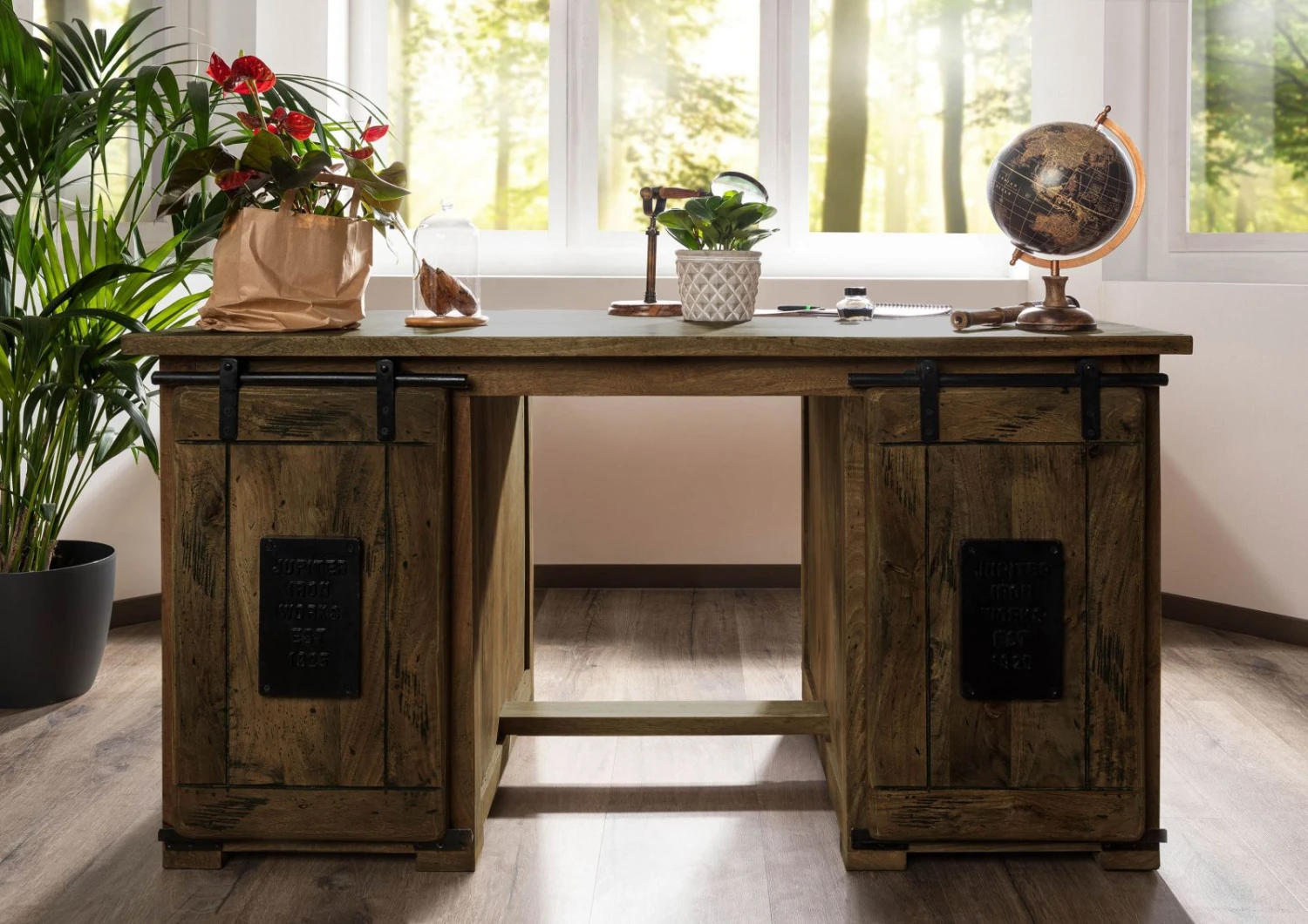 - Bureau design en bois de manguier, au style industriel tendance