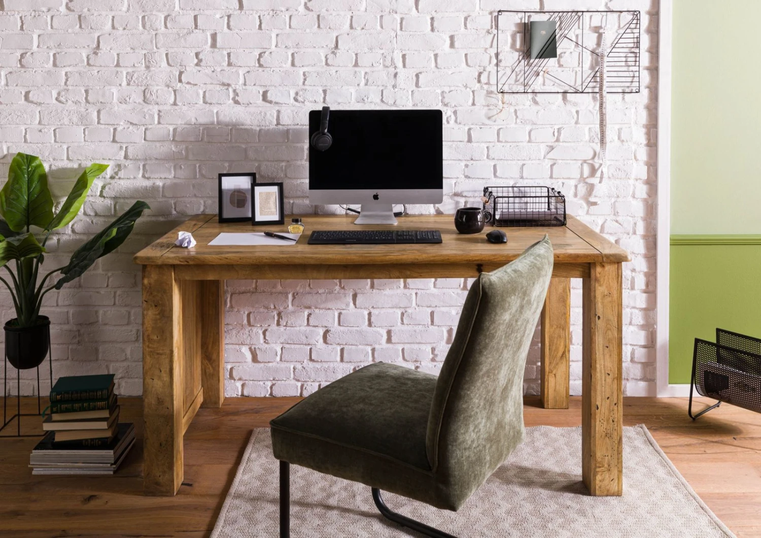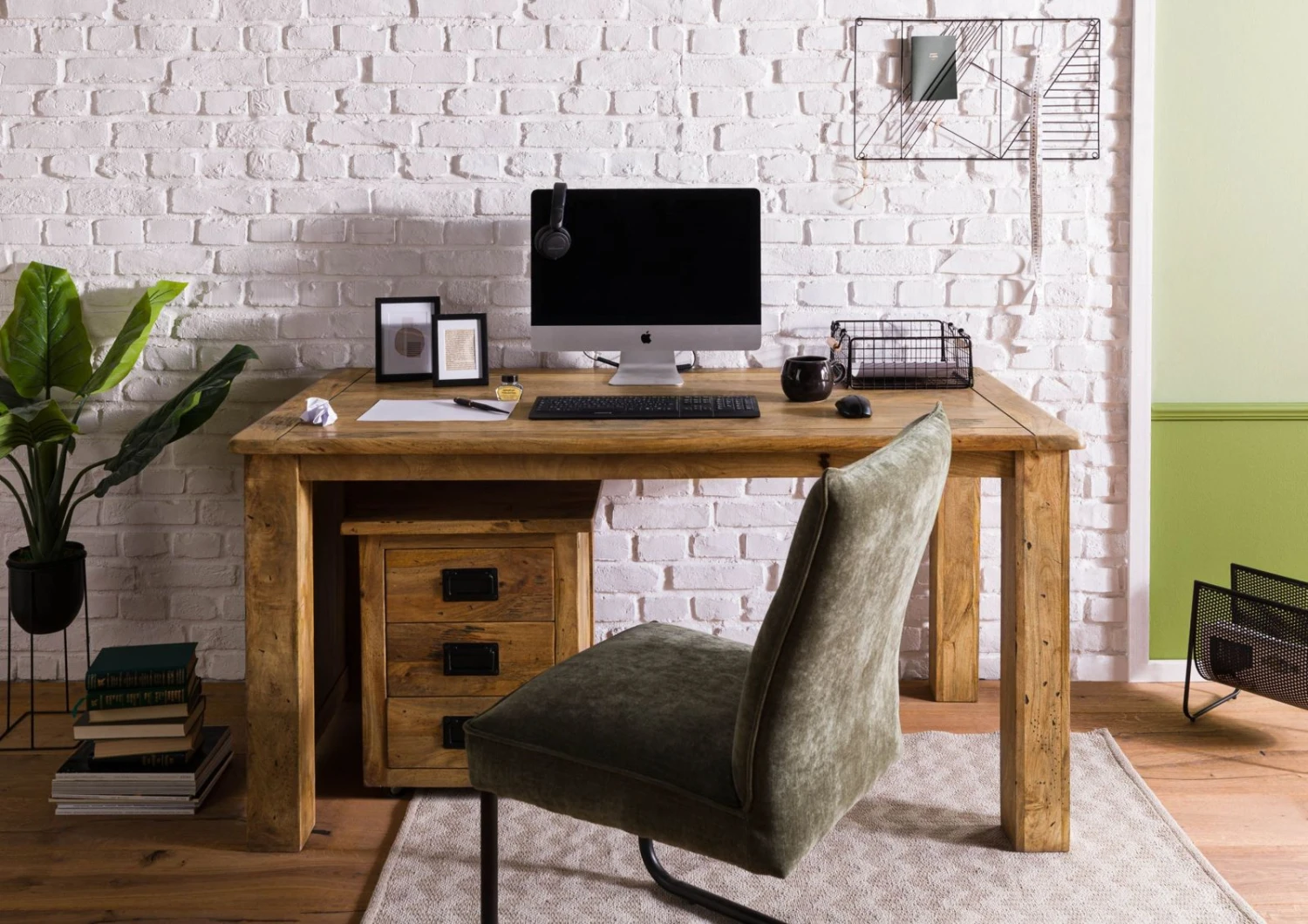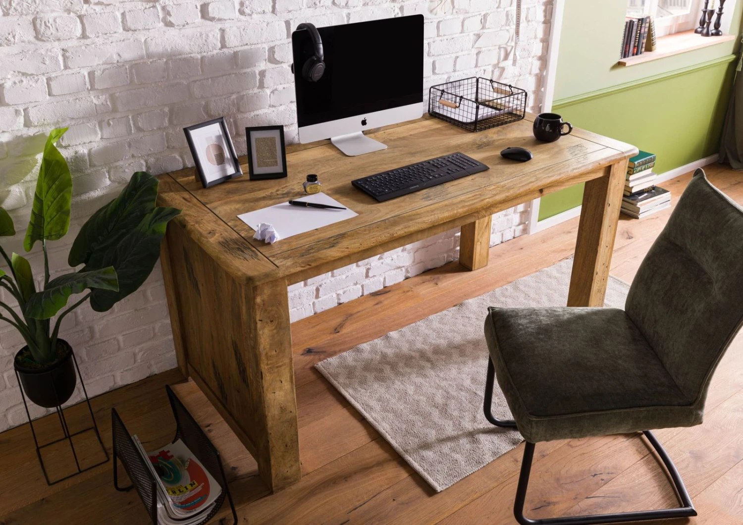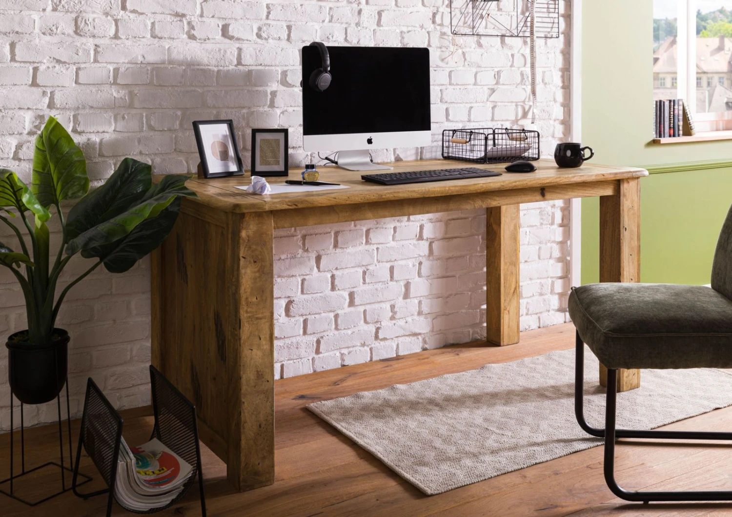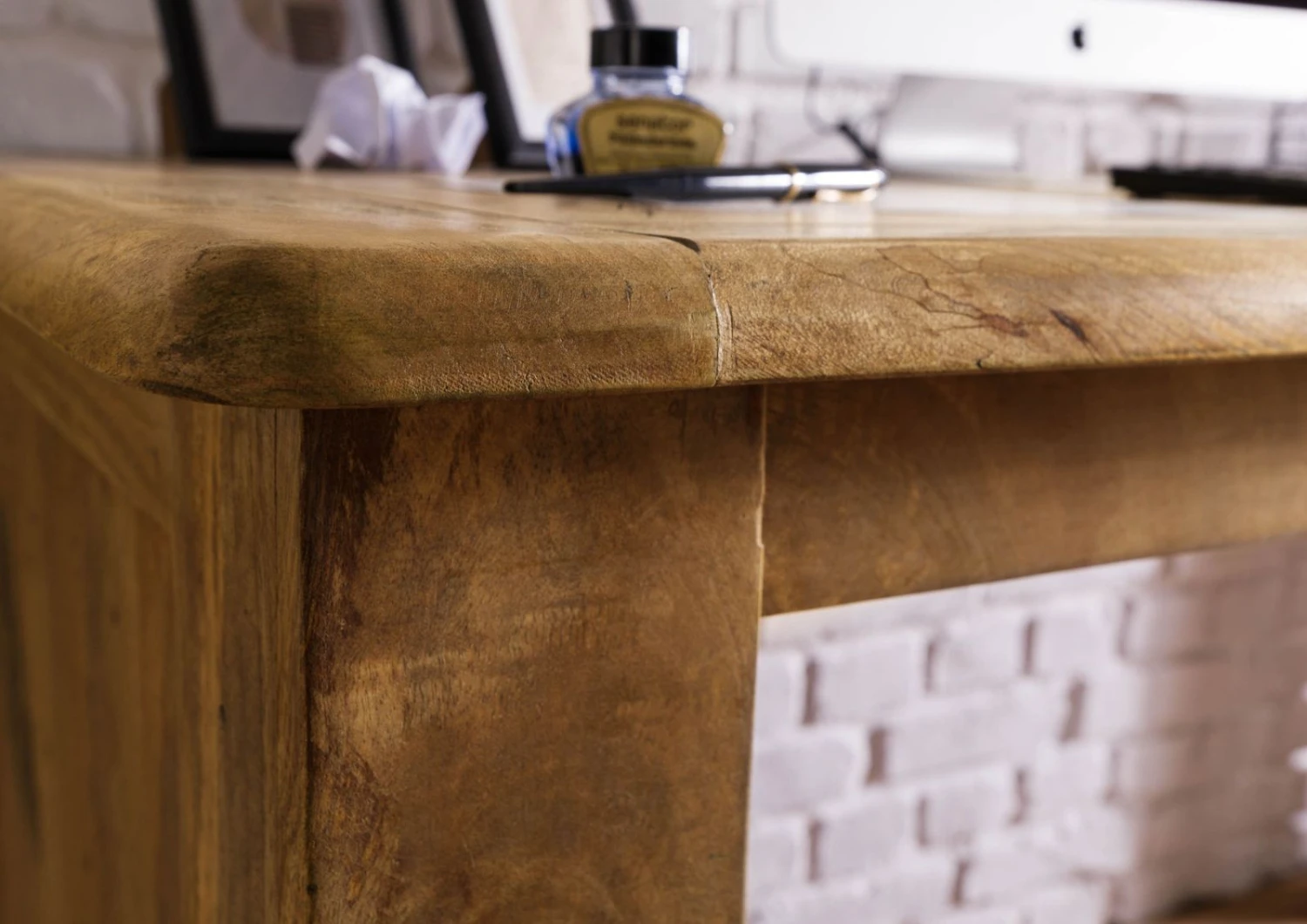 Description du produit Bureau en bois de manguier laqué brun clair RAILWAY #1004