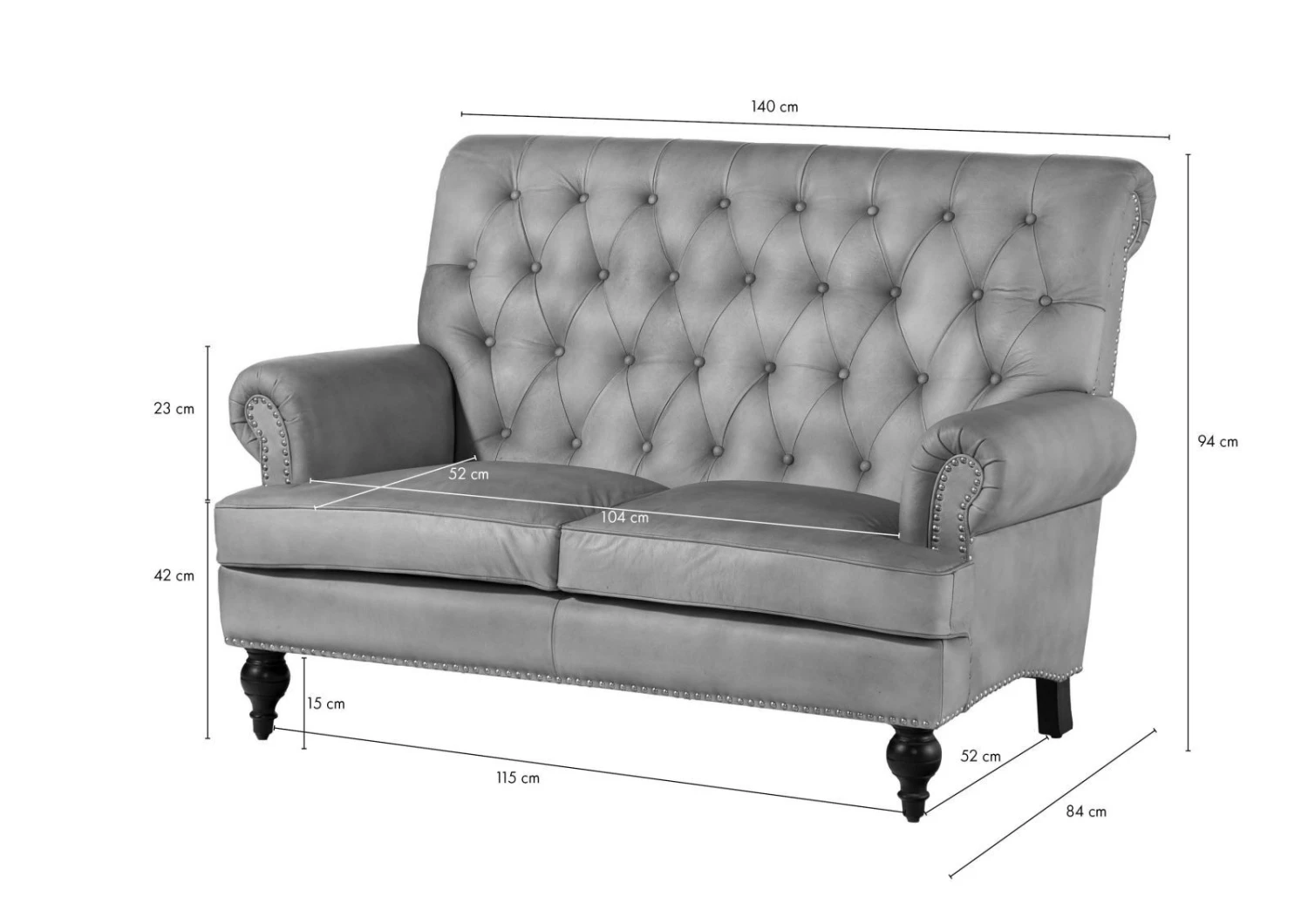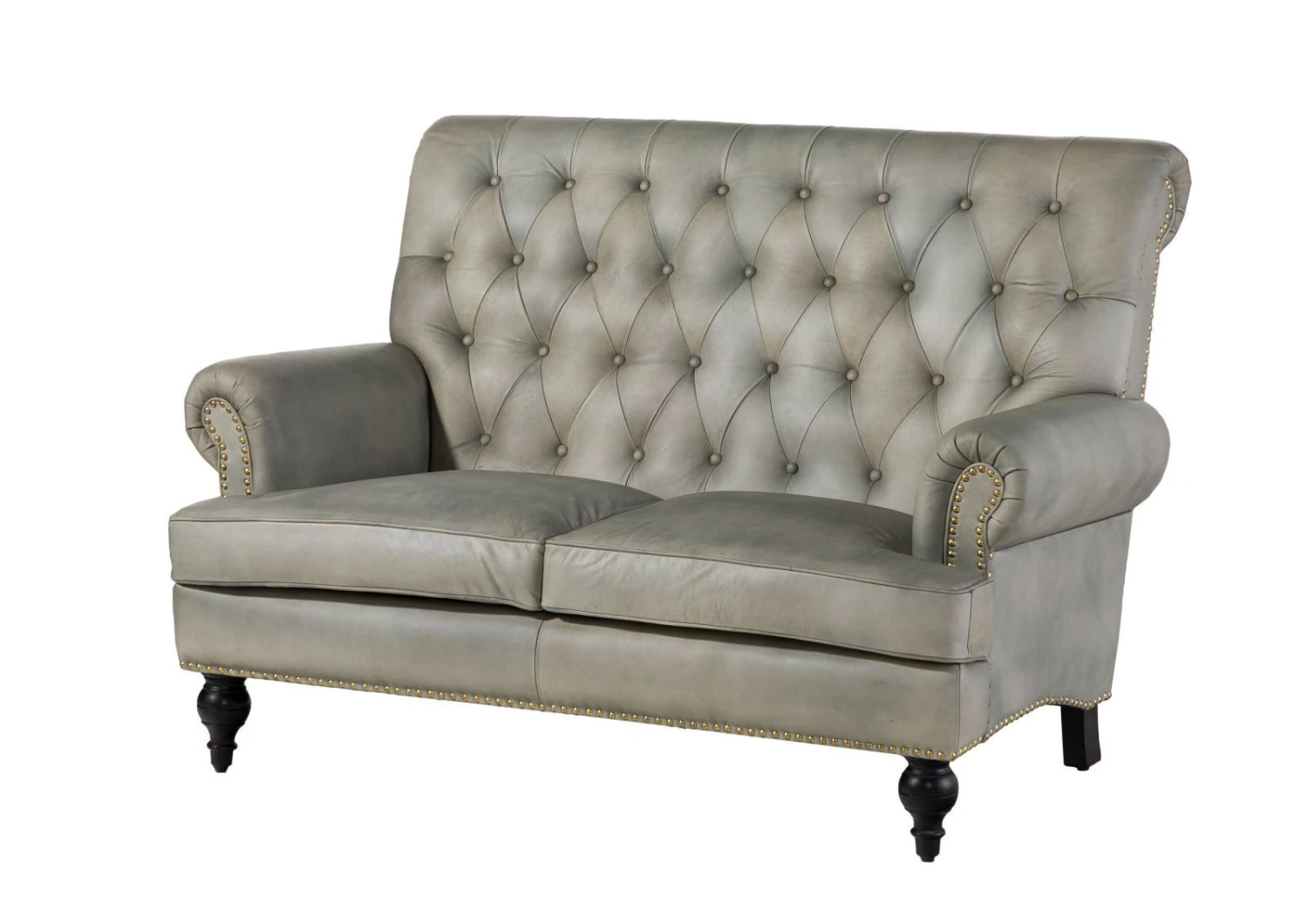 Description du produit Canapé 2 places en cuir véritable gris CHESTERFIELD #206