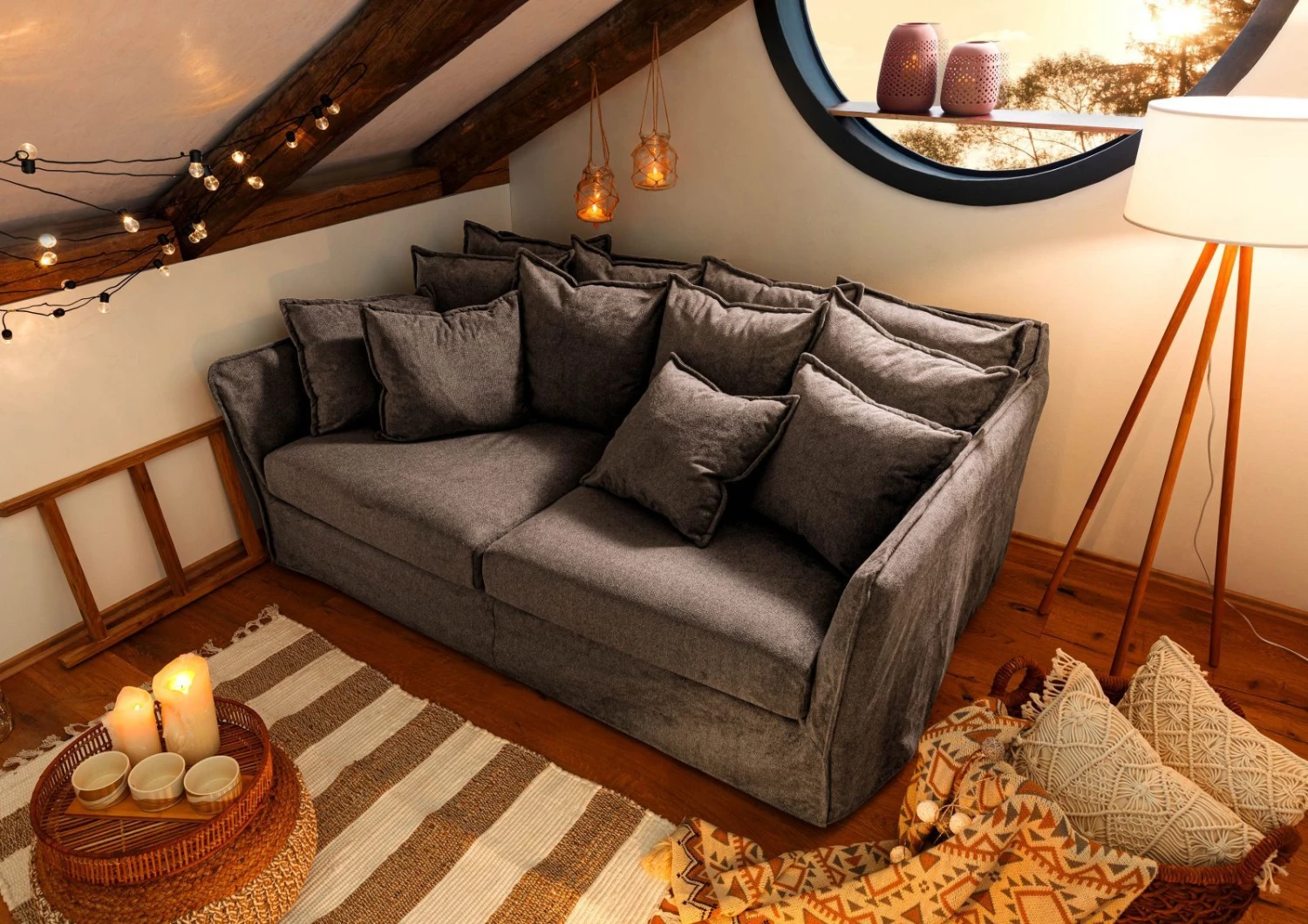- une assise particulièrement profonde, avec de nombreux coussins amovibles : pour trouver facilement la profondeur qui vous convient le mieux