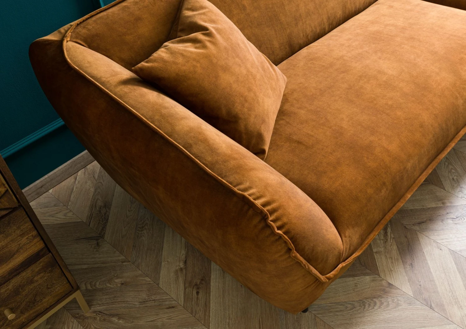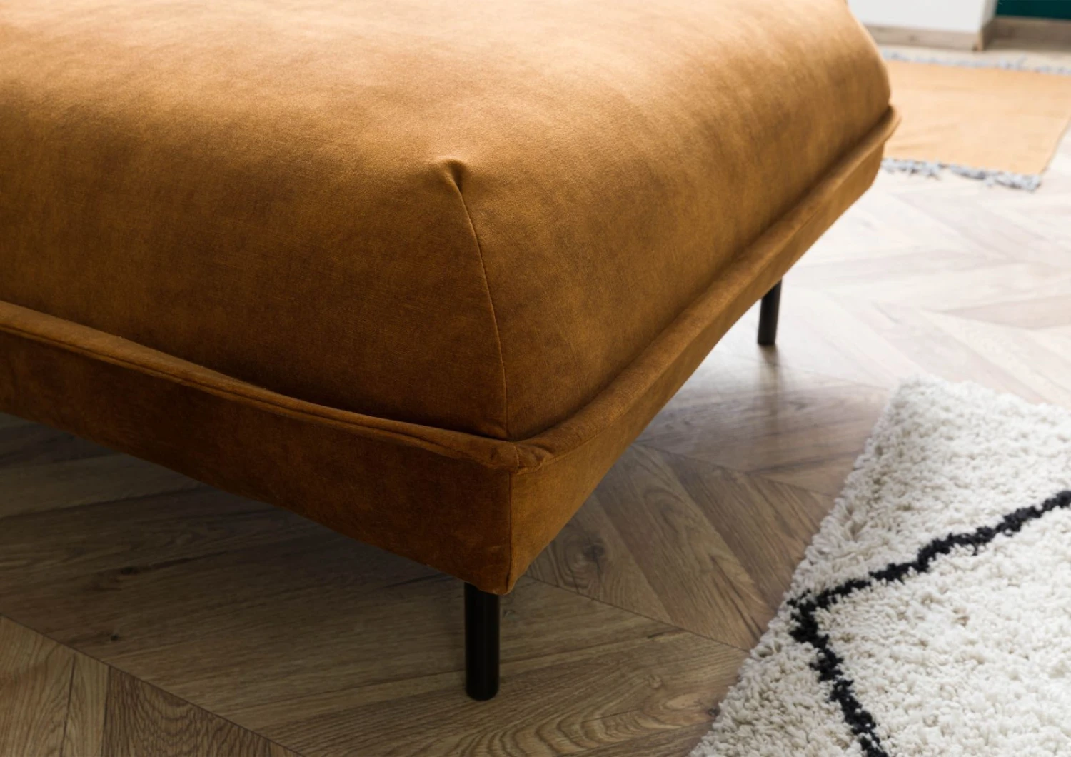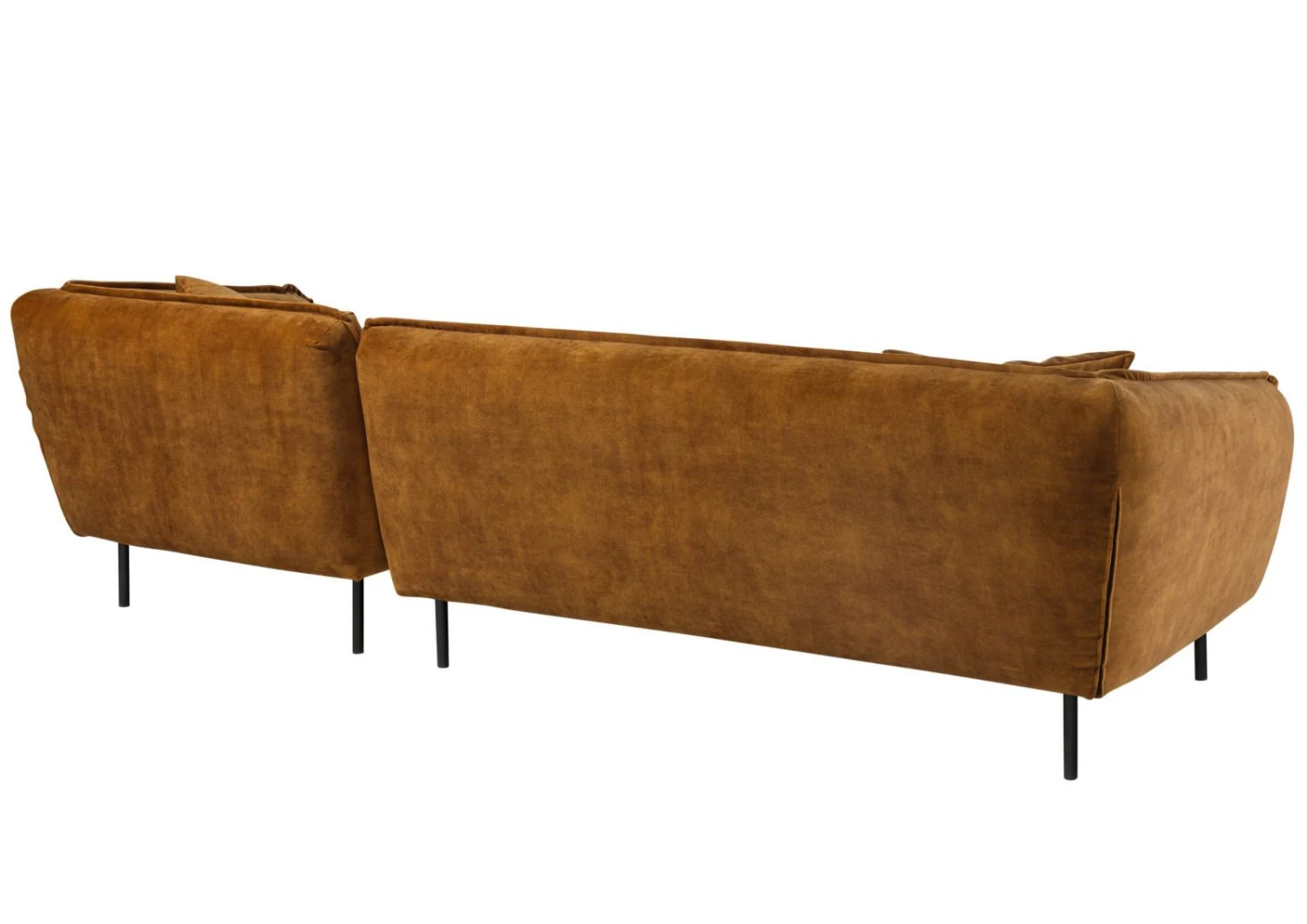 Cadre en panneaux de bois Suspension de siège: ressorts zigzag Garnissage assise: Mousse Mix HR3032 + SG30 + SG25 housse Dacron 150 g/m2 Garnissage dossier: mousse SG18, housse Dacron 150 g/m2 panneau en fibres de bois Revêtement 100% Polyester 2 cousins inclus Pieds en métal noir Lignes et design en parfaite harmonie. Ce canapé d´angle prendra place dans votre intérieur, qu´il soit des plus moderne, du type Art et déco ou même le style industriel. Vous apprécierez son profil et sa couleur soutenu et parerez votre pièce à vivre de sa présence.