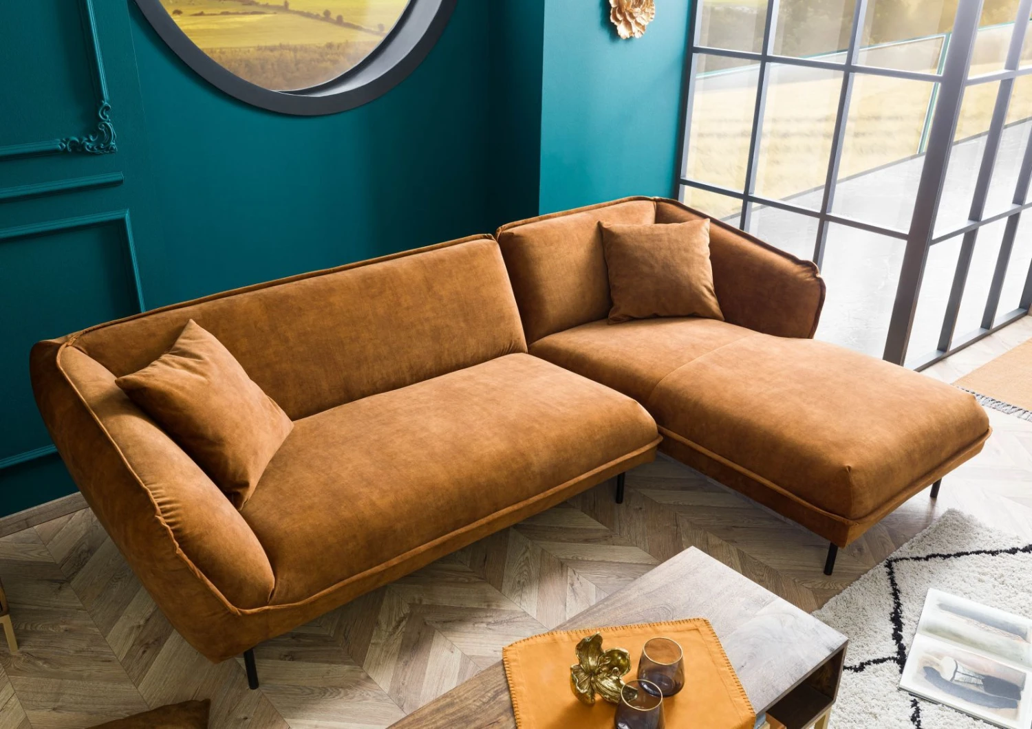 Description du produit Canapé d’angle 277×173 Cognac GENT