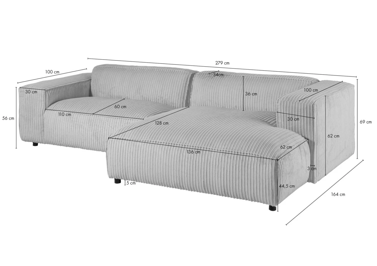Canapé d’angle (279 cm)