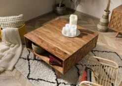 Table Basse En Bois De Sheesham 60x50x50 Marron Clair Laqué MAILAND #130