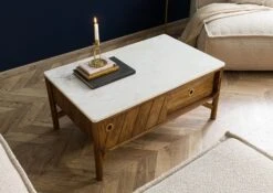 Table Basse Manguier 100x60x45 Marron Huilé / Marbre Véritable LOS ANGELES #05
