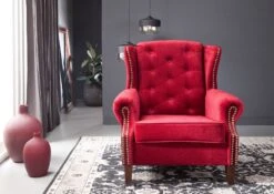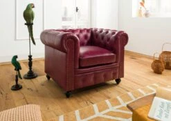 Fauteuil à Oreille En Cuir Véritable Bordeaux CHESTERFIELD #401