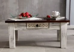 Table Basse 90×60 Manguier Ciré Blanc Antique CASTLE-ANTIK #247