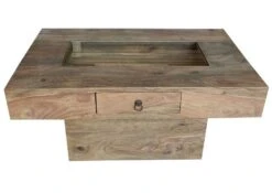 Table Basse 90x90x45 En Bois De Manguier Naturel Laqué RAILWAY #1006