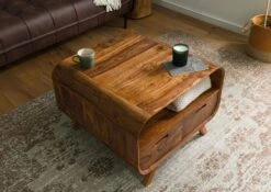 Table Basse En Bois De Sheesham 70x70x50 Marron Clair Laqué MAILAND #132