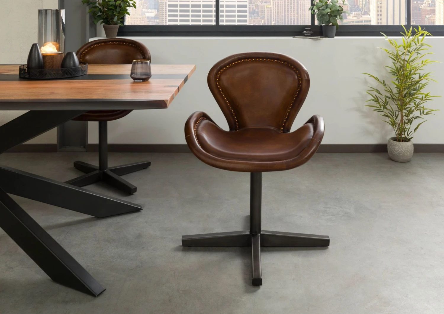 Description du produit Chaise pivotante 59x59x81 cuir brun IRON LABEL #31