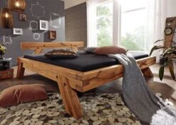 Lit En Poutres De Chêne Sauvage Huilé Naturel 140×200 – BERGEN # 140