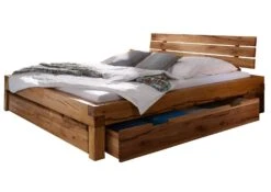 Lit Double Avec Tiroirs 180×200 Chêne Sauvage Huilé Bianco JANGALI #201