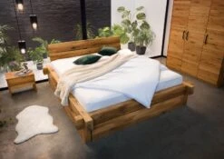 Lit En Poutres De Chêne Sauvage Huilé Naturel 160×200 – BERGEN # 160