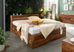 Lit Double Avec Tiroirs 200×200 Palissandre Ciré Noisette TORONTO #259