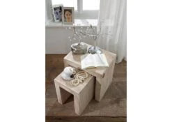 Table D’appoint 45×35 Acacia Blanchi Blanc Lot 2 Pièces NATURE WHITE #12