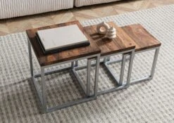 Table D’appoint 40×30 Palissandre Huilé Gris Taupe Lot 3 Pièces LEEDS #22