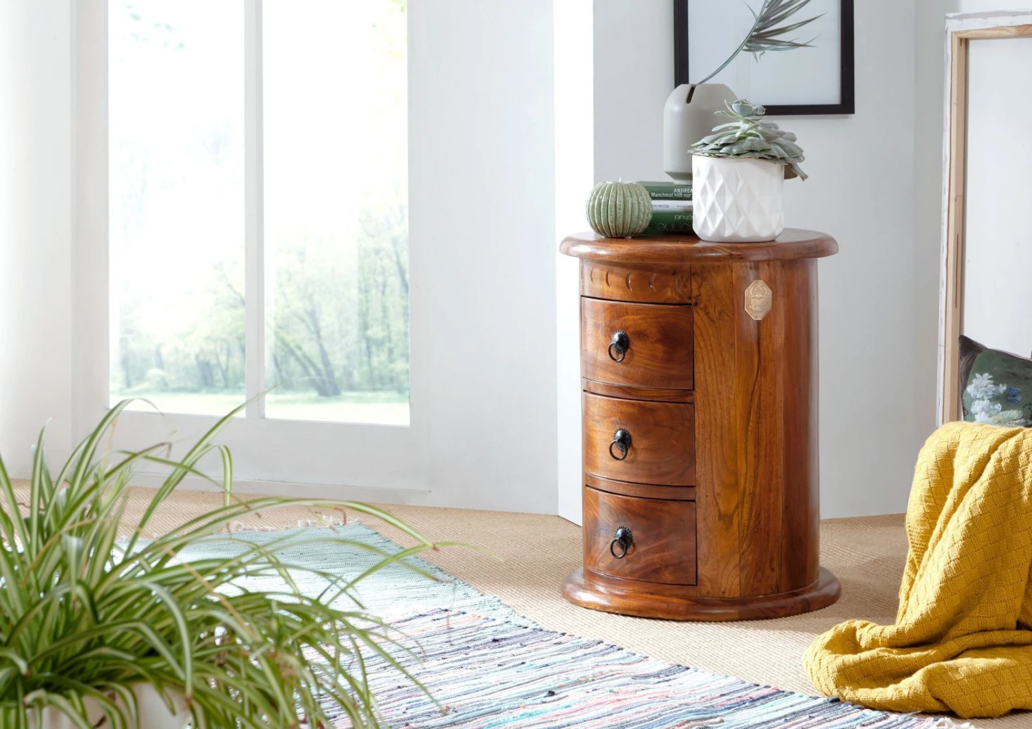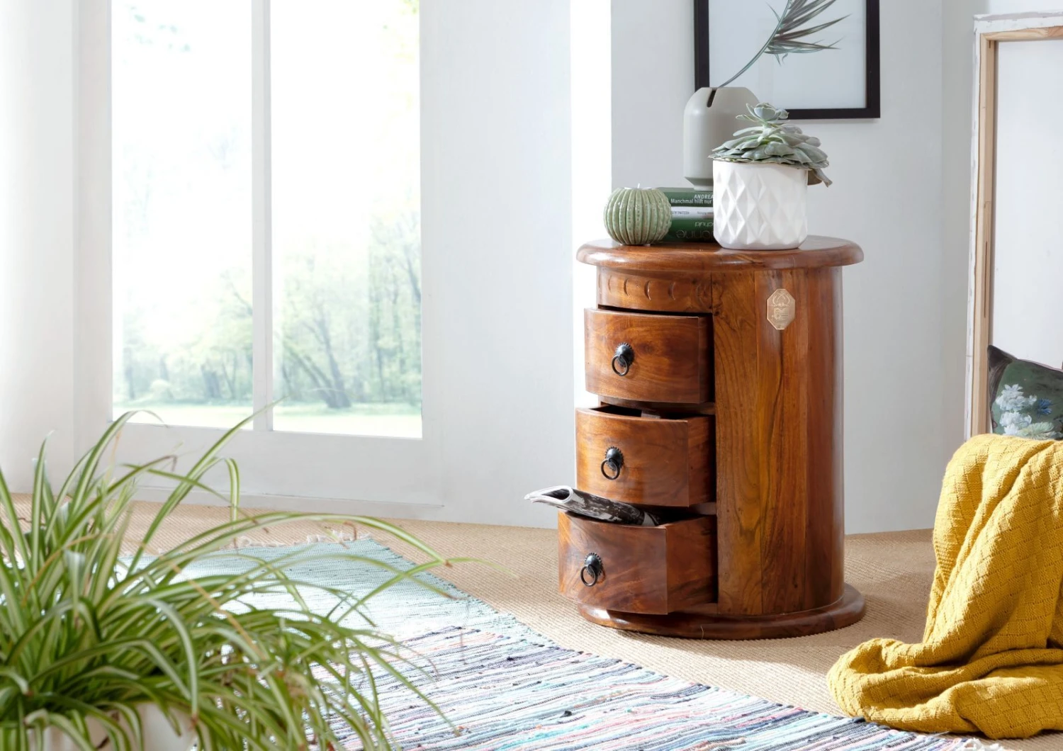 Nos produits sont fabriqués artisanalement à partir de matières premières naturelles. Les couleurs et les structures des bois utilisés peuvent donc varier d′un meuble à un autre. Les imprimés, peintures et dessins sont aussi fait à la main et peuvent, de ce fait, présenter des variations par rapport aux visuels de notre site.