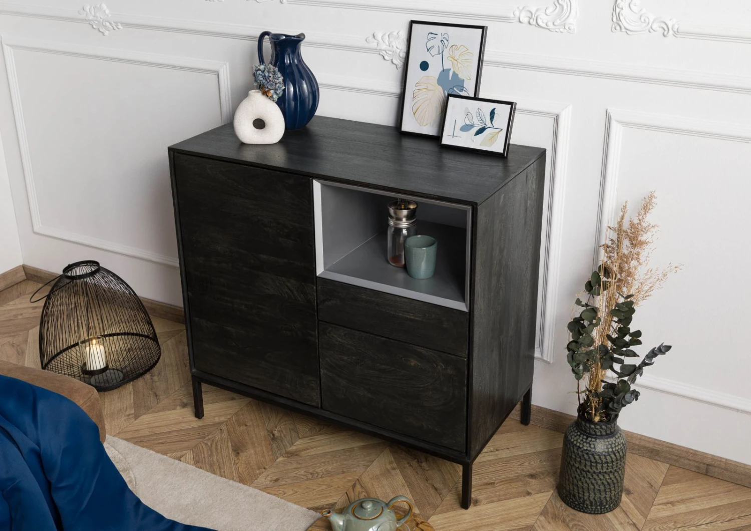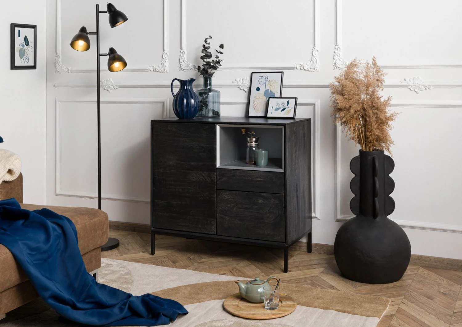 2 portes, 1 tiroir et un compartiment ouvert pour un rangement pratique et décoratif.