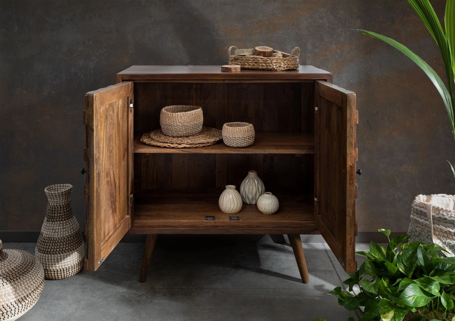 Laissez-vous tenter par la modernité de notre série STILMÖBEL sur un fond art déco. Découvrez l´art et la manière de marier les formes rectilignes et les motifs étonnants – marquetée, gravés ou incrustés- sur du bois exotique afin de créer des meubles uniques. Avec un charme rétro et un aspect ethnique enivrant, cette série propose une large gamme de mobilier, en acacia ou manguier, dont les façades sont sculptées et travaillée artisanalement avec soin. Vous pourrez associer ces meubles à toutes sortes de décorations – quelles soient d’inspiration exotique ou contemporaine. Ces pièces uniques apporteront une ambiance envoûtante et originale à votre intérieur.