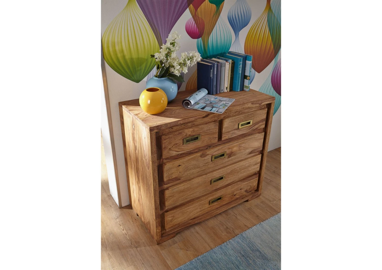 Nos produits sont fabriqués artisanalement à partir de matières premières naturelles. Les couleurs et les structures des bois utilisés peuvent donc varier d′un meuble à un autre. Les imprimés, peintures et dessins sont aussi fait à la main et peuvent, de ce fait, présenter des variations par rapport aux visuels de notre site.