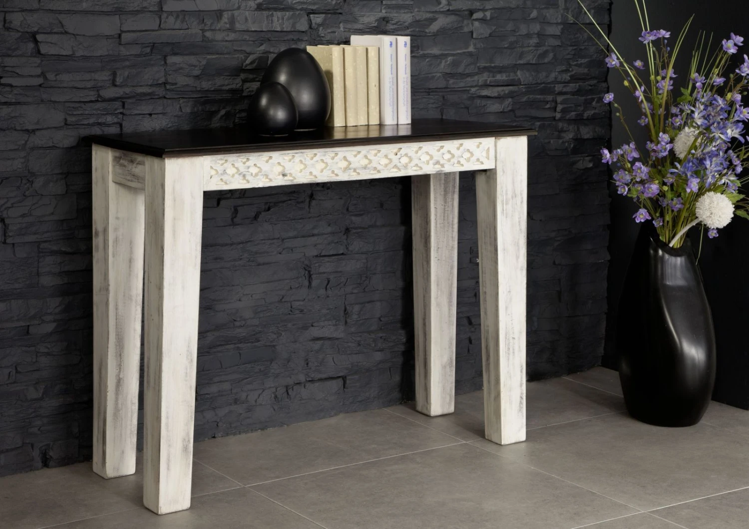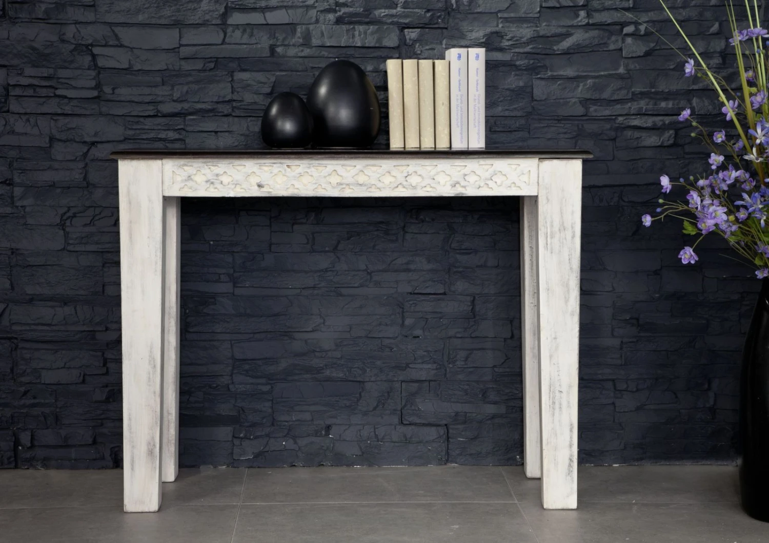 Description du produit Console 110×40 Manguier ciré Blanc antique CASTLE-ANTIK #241