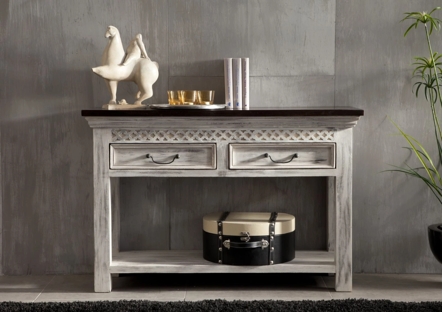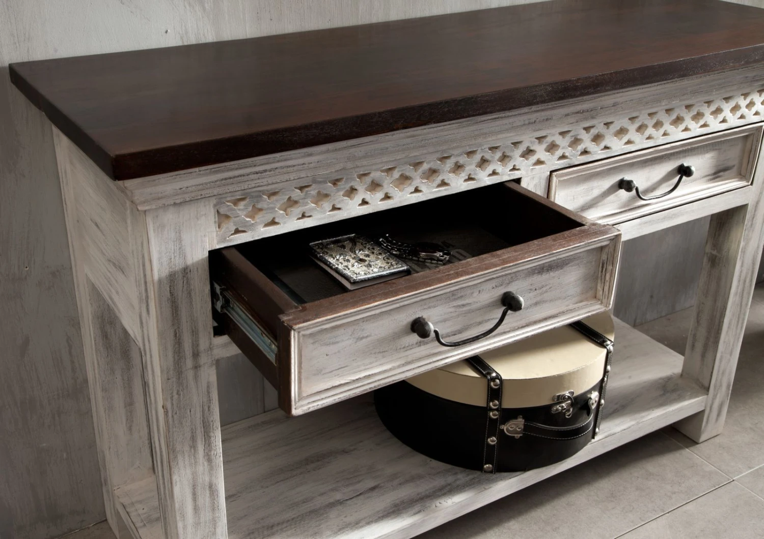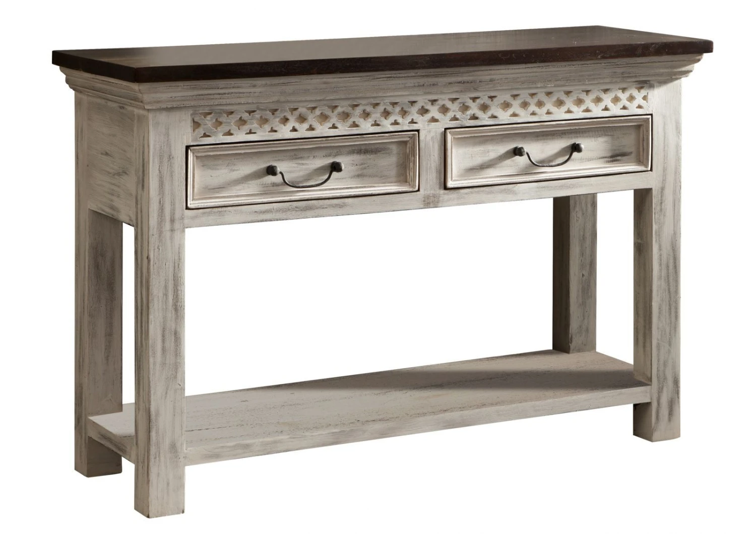 Description du produit Console 115×40 Manguier ciré Blanc antique CASTLE-ANTIK #269