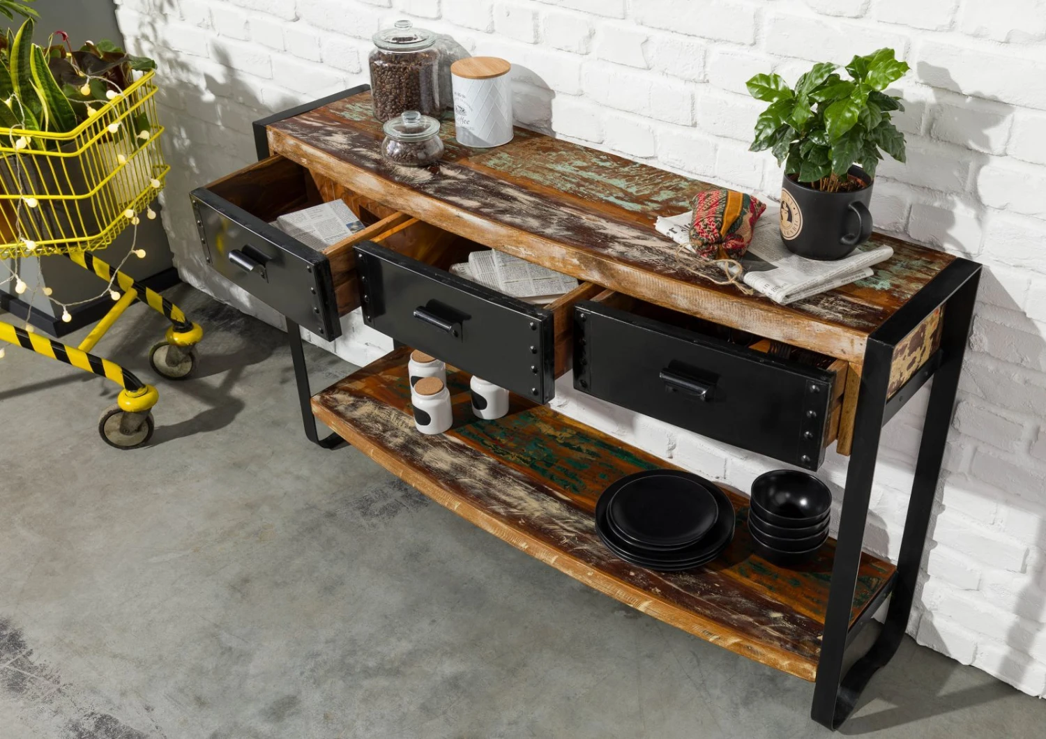 Description du produit Console 135×35 Bois de récupération laqué Multicolore INDUSTRIAL #42