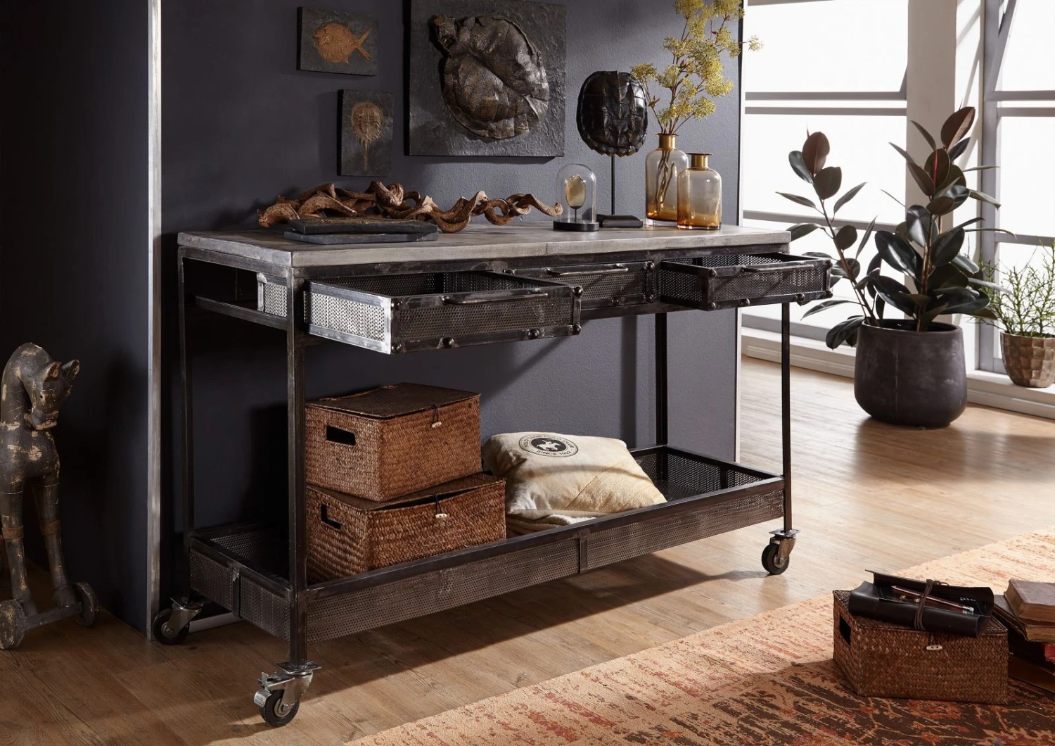 Matériaux brut, effet usé et couleurs froides, le style industriel a déjà su séduire de nombreux adeptes de design au fil des décennies. Lassociation entre le bois massif de manguier et le métal brut fait des meubles de notre série HEAVY INDUSTRY des pièces robustes et incontournables pour tous les amoureux de mobiliers non-conventionnels. Surprenez-vous dans votre créativité en revisitant et relookant votre intérieur avec ces pièces atypiques. Nayez plus peur dassocier des couleurs et des matières différentes, notre collection inspirée des manufactures du siècle dernier vous laisse une liberté totale.